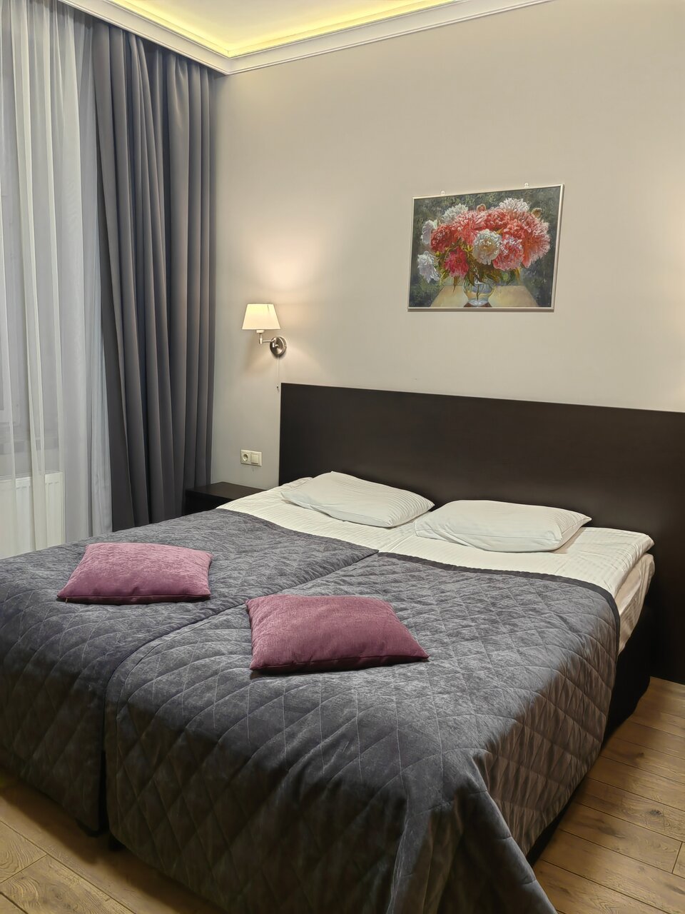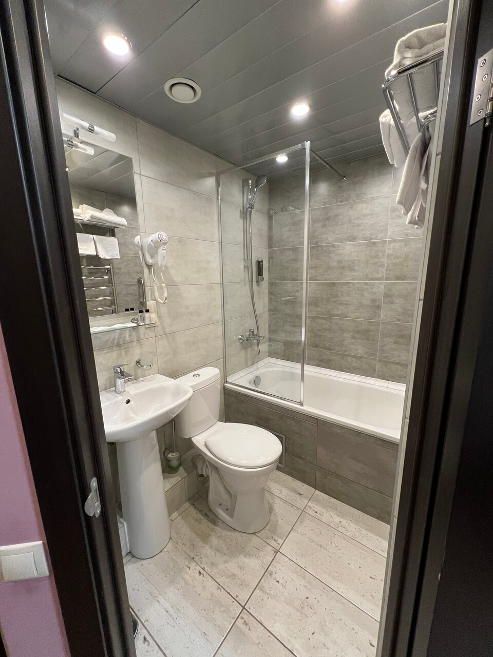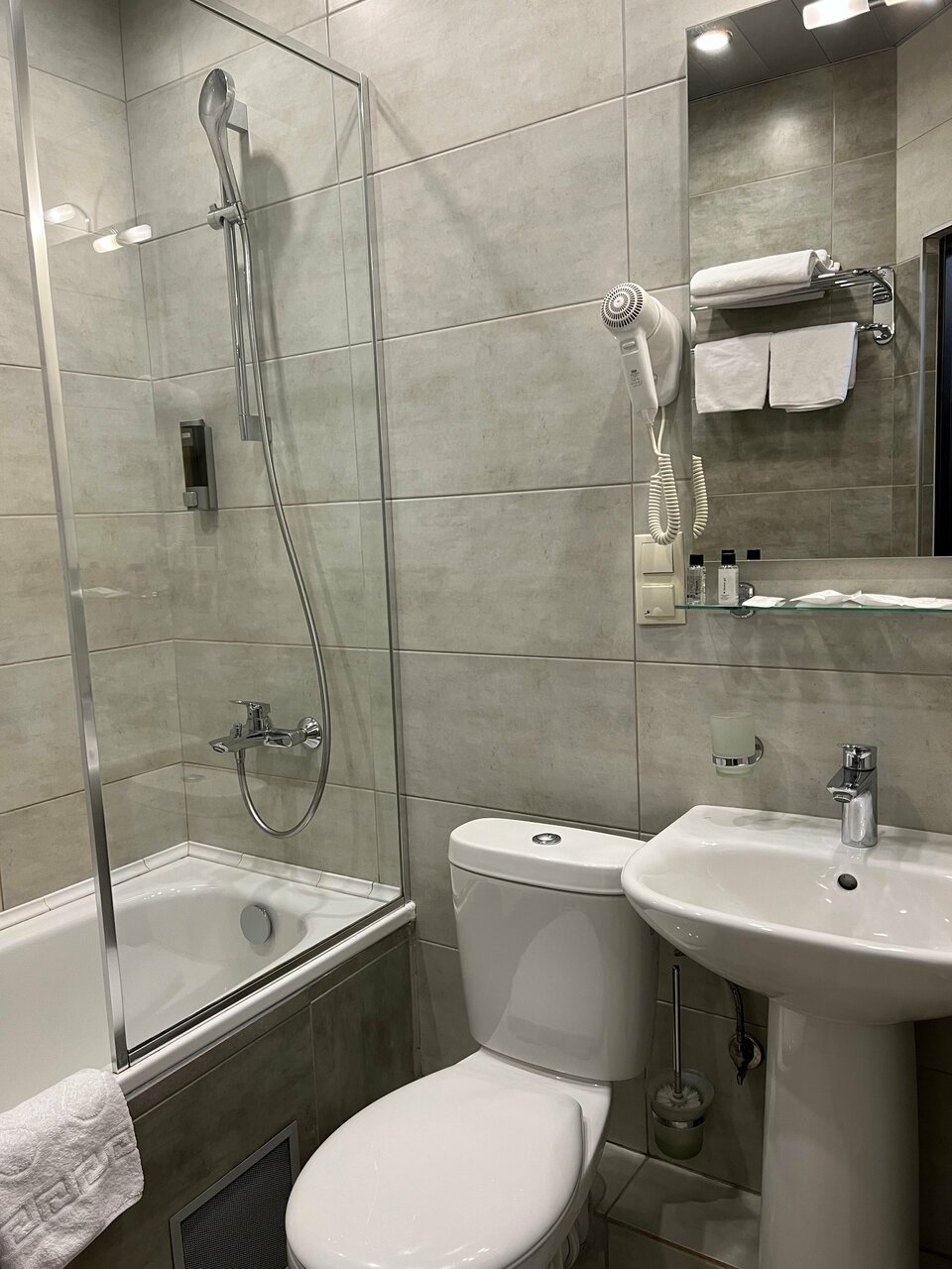 Отдыхали в апреле 2025.От отеля только положительные впечатления.Очень уютно,номер был стандарт,претензий нет,кровать удобная,постельное белье чистое,уборка каждый день.Очень вкусные завтраки.Единственное,что не понравилось-очень слабый фен,но это не критично.В номере гель для душа,шампунь,мыло,одноразовая шапочка для душа,тапочки.Также есть обувной набор.Чайник,чай,сахар,чашки.Сантехника хорошая,все работало.На этаже утюг,кулер с водой.Соседей не слышали.Расположение хорошее,транспорт рядом,до метро 15 минут,много магазинов рядом.