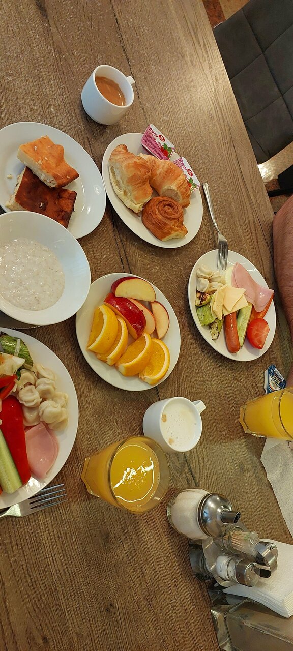 Завтрак шведский стол, выбор не большой, но всего хватает и вкусно! Расположен чуть в стороне от центра и это отлично! Очень тихо в номерах. Номера норм, у нас было 3 шт и все неплохие. Персонал доброжелательный, но вот на одну просьбу не отреагировали(ложечка дегтя). Есть камера хранения. Рекомендую!