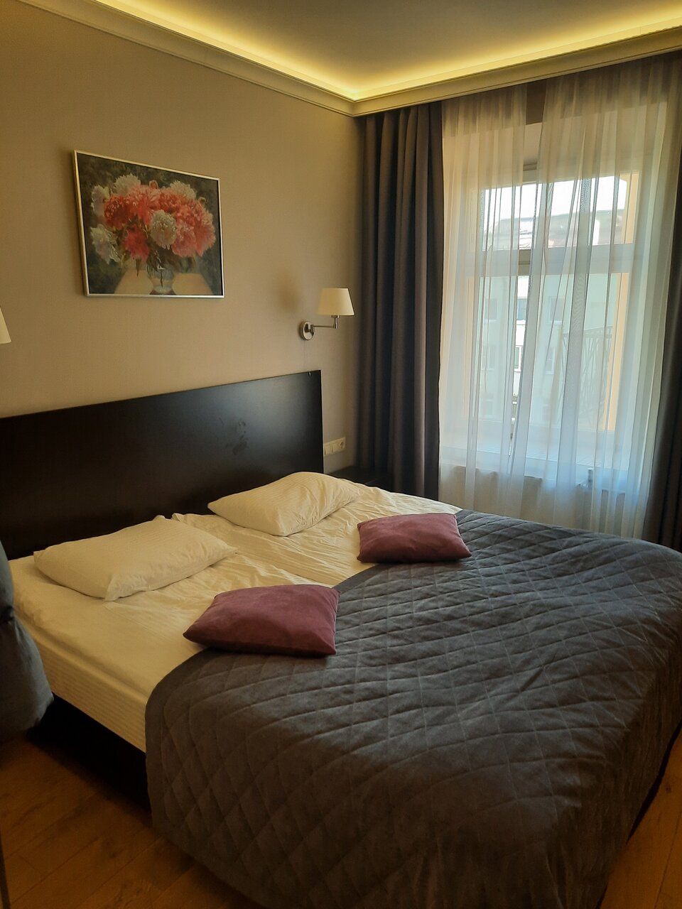 Хороший сервис, симпатичный отель, удобное расположение. Но большие проблемы с уборкой, очень много недомыто, не до убрано. Вроде убирают, но не доделывают, очень много волос на полу, сантехника. Не очень приятно. И лично в моем номере душ был всегда контрастный, причём разница в температуре воды даже не пара градусов. А это из кипятка случался резкий переход в ледяную воду. Реакция тренируется мгновенно. Но очень дискомфортно. Завтраки обычные, голодной не разу не осталась. Постельное чистое, полотенец достаточно, есть средства по уходу за обувью.