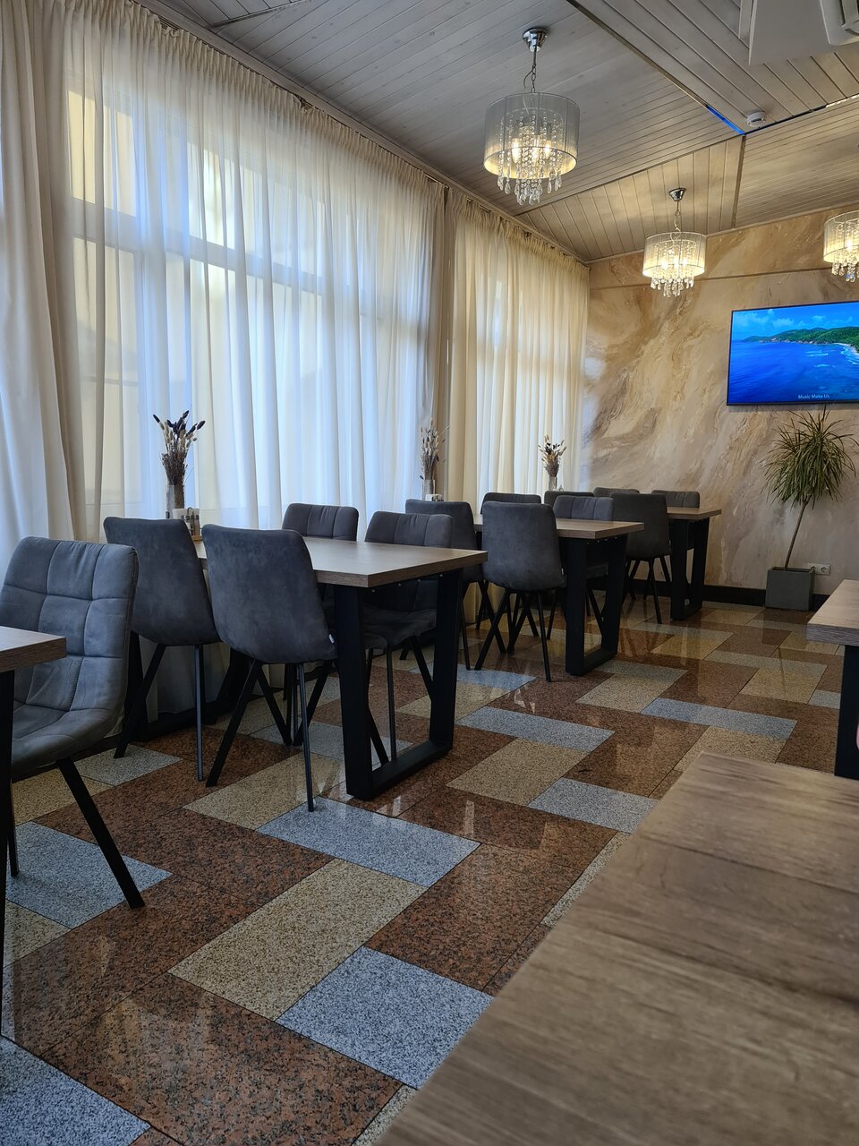 Сначала хотела 3ку поставить. Не поняла откуда вообще 5ка у отеля накрутилась. Может летом лучше. Опишу плюсы и минусы Плюсы: Брали люкс, места для семьи с двумя детьми в целом достаточно Ванная, а это значит никакой воды на полу Чисто. Везде. Персонал хороший Минусы: Предоставленный шампунь не мылился даже. Такое впервые встречаю. Очень было хородно 1 ночь. Спали в свитерах. В ванной тоже при включенном полотенцесушители холодрыга, на 2й день предоставленный обогреватель справился с комнатой..но первая ночь успела нас довести до насморка. Завтра смысла брать нет. Все невкусное и самое дешевое. Купите уже