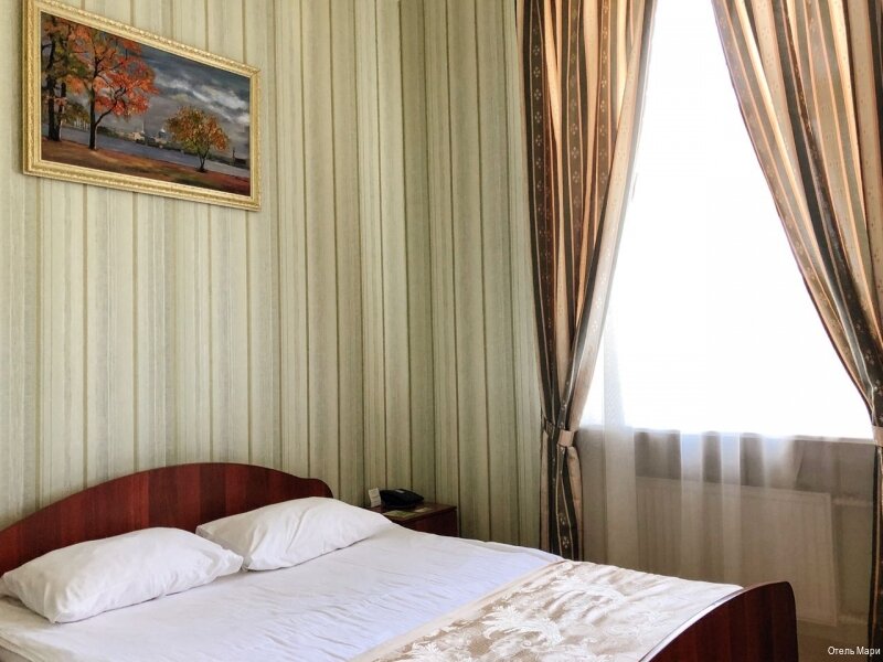 Очень хороший, уютный и душевный отель! Останавливались на 3 дня в номере на троих человек, никаких нареканий. В номере чисто, один раз также сделали уборку во время проживания. Имеются полотенца, гигиенические принадлежности, тапочки. На ресепшне отличный персонал! Мы приехали в Санкт-Петербург в 6 утра, а заселение в 14, мы позвонили в отель, и нам повезло, что наш номер был свободен, поэтому нас заселили раньше. Цена проживания очень бютжетная, а атмосфера, отношение и обслуживание в отеле прекрасные! Спасибо отелю Мари!
