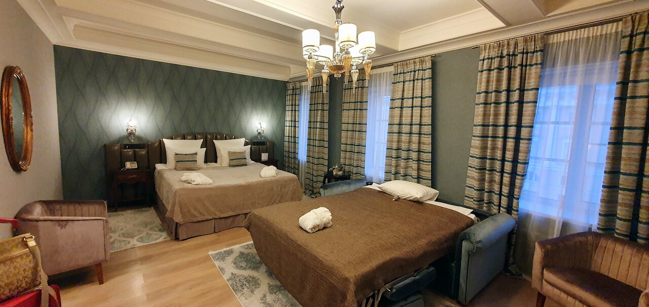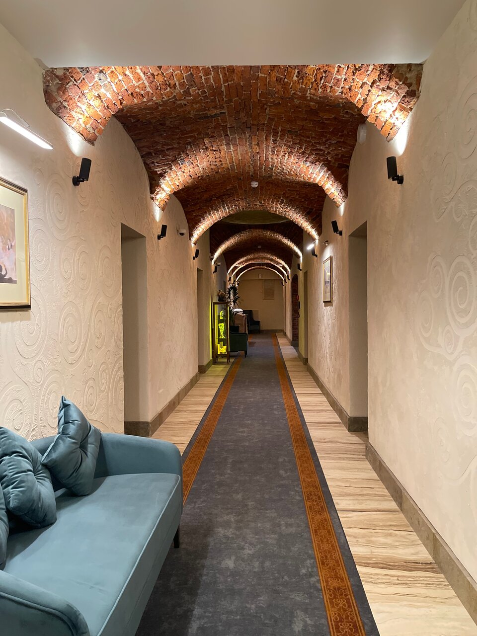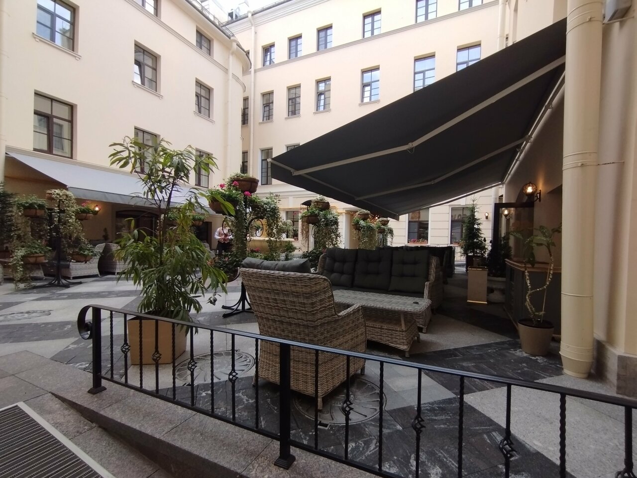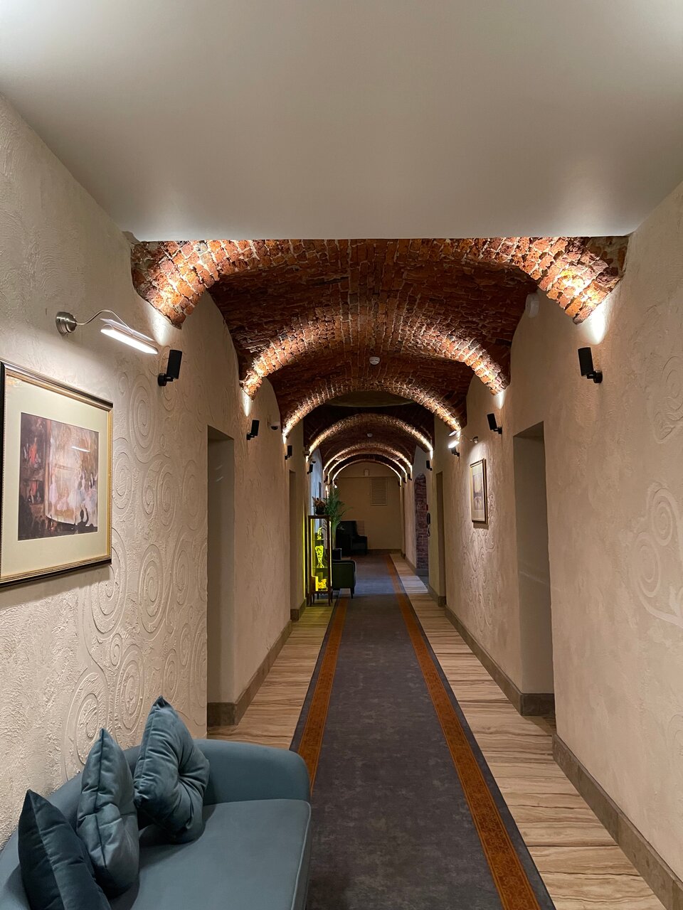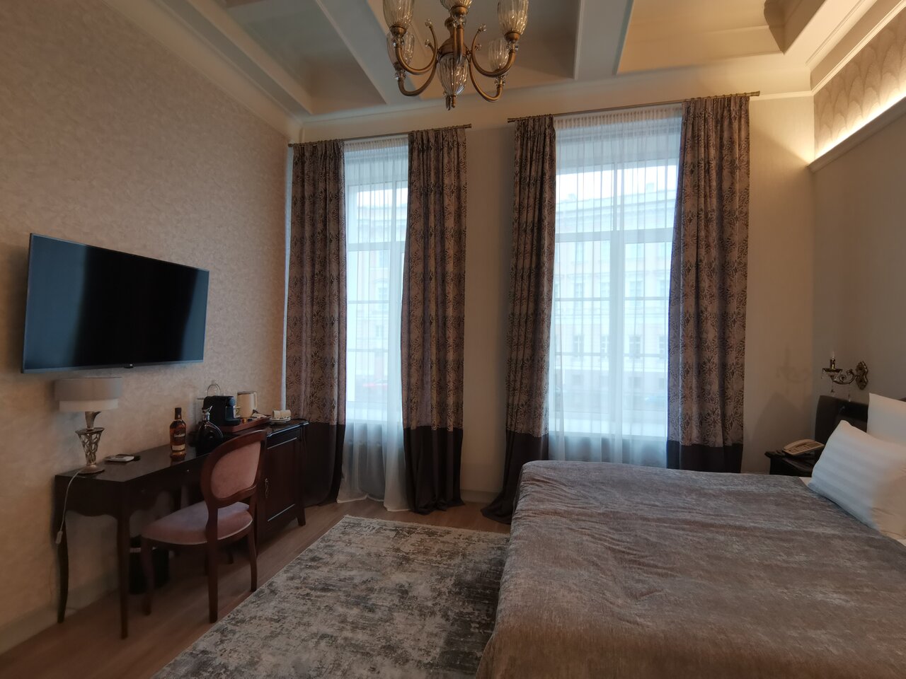 Проживали в отеле в середине июня, остались самые лучшие впечатления об отеле. Очень удобное расположение — на набережной реки Мойки, в нескольких шагах от Дворцовой площади. Сам отель атмосферный, с сводчатыми кирпичными потолками на 1 этаже. Номер оформлен в классическом стиле. В номере все необходимое для комфортного проживания, согласно описанию на сайте. Уборка ежедневная, весь отель чистый и ухоженный. Услуга — меню подушек, заслуживает отдельной похвалы. При раннем заезде и позднем выезде, есть возможность оставить свои вещи и прогулятся по городу. Персонал вежливый и профессиональный. Во дворе отеля есть замечательный дворик с диванчками и креслами, где можно просто передохнуть, а так же воспользоваться услугами лобби-бара. Ресторан СОЮЗ с инересным меню по республикам СССР. При бронировани отеля брали завтраки — остались очень довольны. Включенными в проживание услугами СПА не пользовались. В следующий свой приезд в Санкт-Петербург, однозначно выберу данный отель.