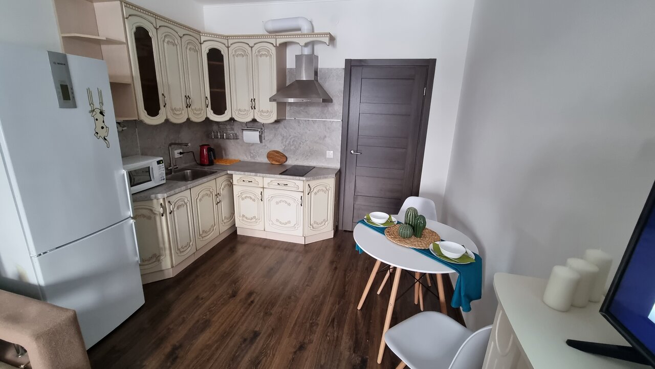 Плюсы: Недалеко от метро, чистота, в доме было тихо, техника и принадлежности исправны, заселение и выезд проблем не доставили, адекватная цена. Минусы: Очень мало кухонных принадлежностей, маленький холодильник, вид на кладбище. Резюме: Квартира идеальна для командированного. Как база для семьи для осмотра города, может быть не совсем удобна.