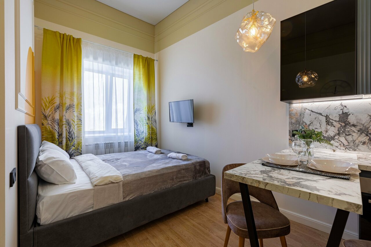 Проживали в апартаментах 4 ночи, остались недовольны по след причинам: 1. никто не выходил на связь, перед заездом писала, чтобы уточнить детали, в итоге никто не ответил. Когда приехали в Питер, трубку никто не брал. 2. Нет всего необходимого: микроволновки, полотенец (было 3 штуки, по-одному каждому + маленькое для рук, но учитывая душ, очень много воды попадает на пол, не хватило полотенца или чего-то, что можно положить на пол), шкафа (вещи класть не куда) 3. Самый большой минус — шум, в номере очень жарко, так как нет кондиционера, поэтому постоянно окно открыто, спать из-за шума дороги невозможно. Также нет сетки, поэтому в комнате куча комаров. Общие впечатления остались отрицательные, желание возвращаться нет.