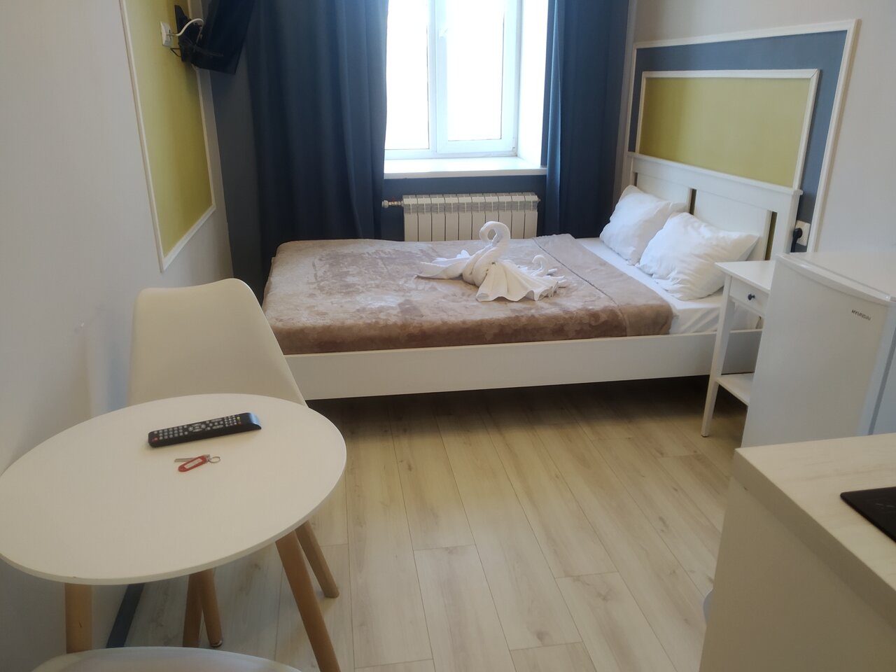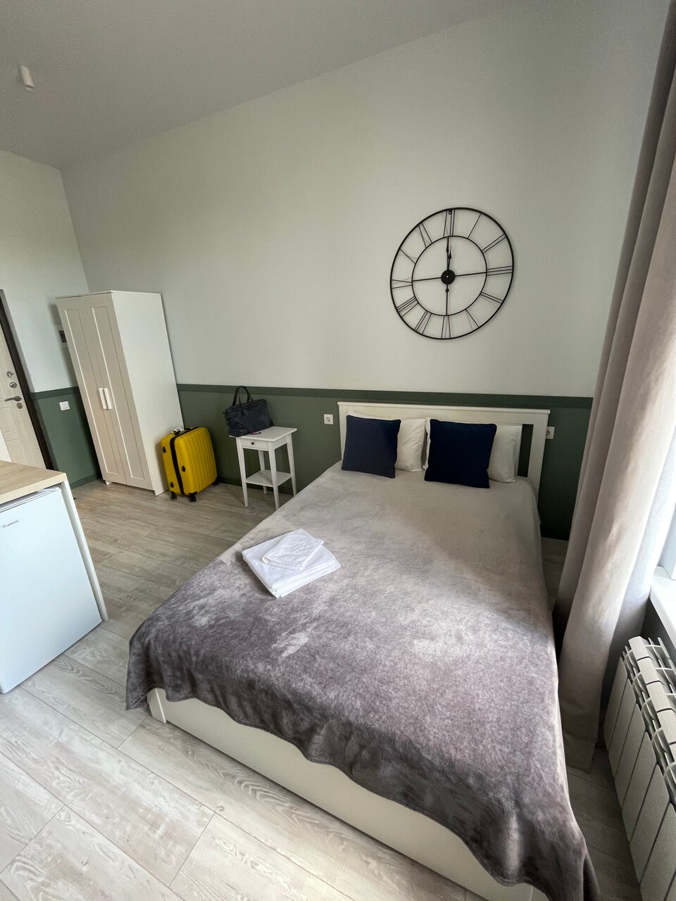 Удобно что есть все необходимое утюг,фен,плита, посуда, холодильник, но абсолютно некуда положить свою одежду (номер на двоих стандарт) кровать, маленький столик, 2 табуретки, пару вешалок и это при том, что в номере развернуться негде. Нам попался естественно номер которого не было на фото, заселялись днем в +20 дышать было нечем, окно небольшое и вовсе не над кроватью, а над кухней, очень это расстроило, написала администратору с просьбой замены номера, в ответ а вы все ли фото посмотрели? Ваш номер соответствует вашей выбранной категории, заменить конечно же нечем, все занято. А еще на постели было полно волосков, местами пыльно. Вообщем не вернемся.