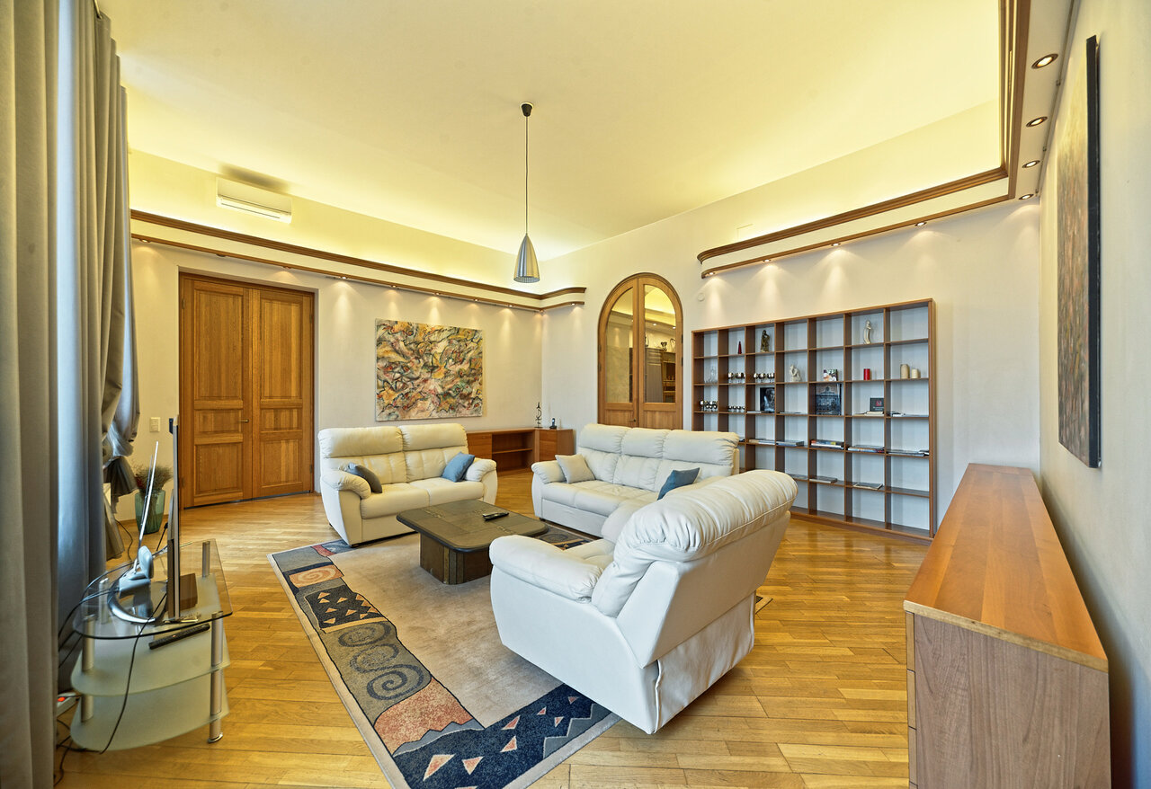 Art-Home предлагает солнечную и просторную квартиру с высокими потолками, общей площадью 210 кв метров, расположенную в здании середины 18 века на набережной Невы в двух шагах от Эрмитажа.