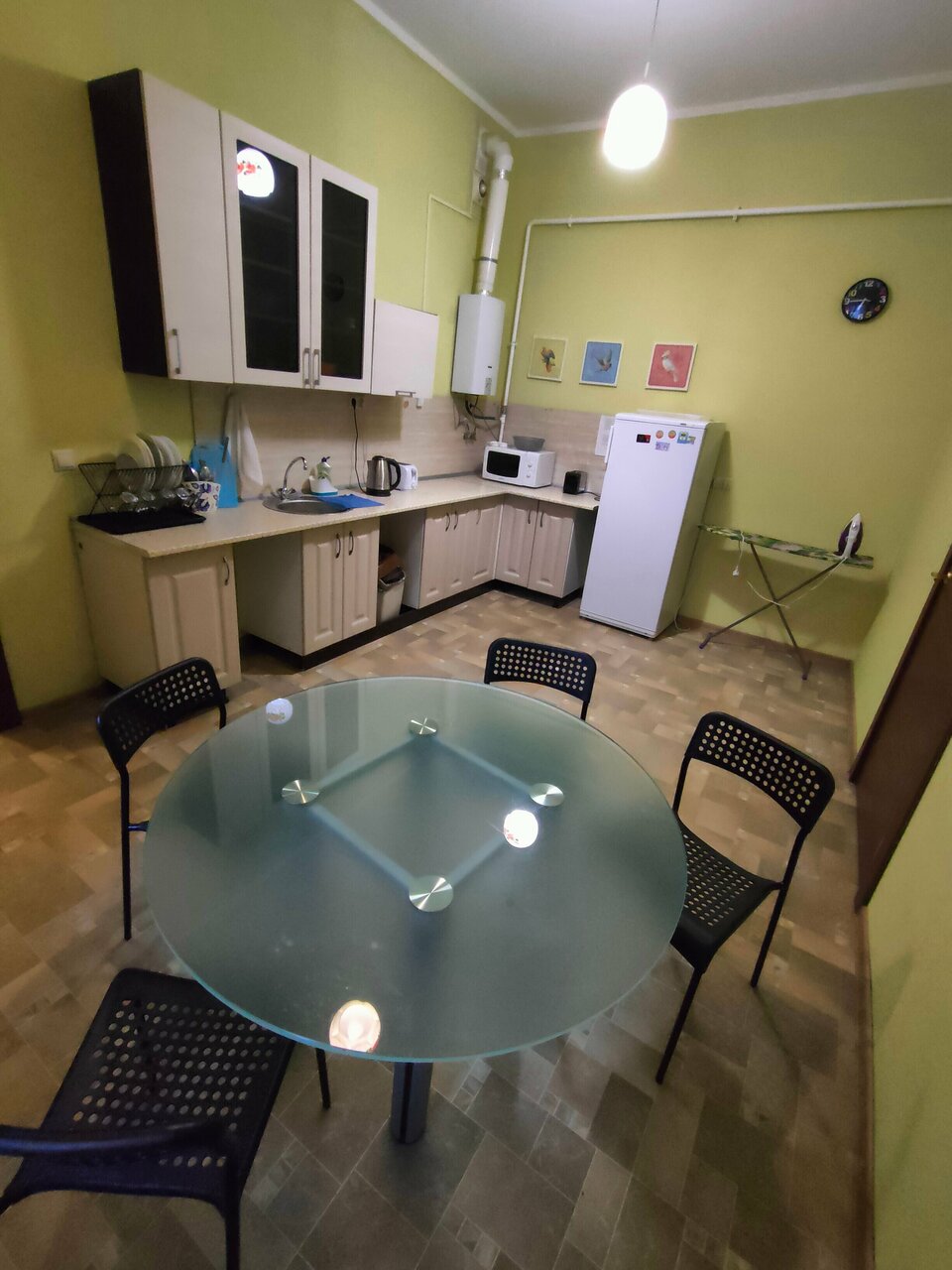 - Наличие общей кухни с посудой, микроволновкой, холодильником.
