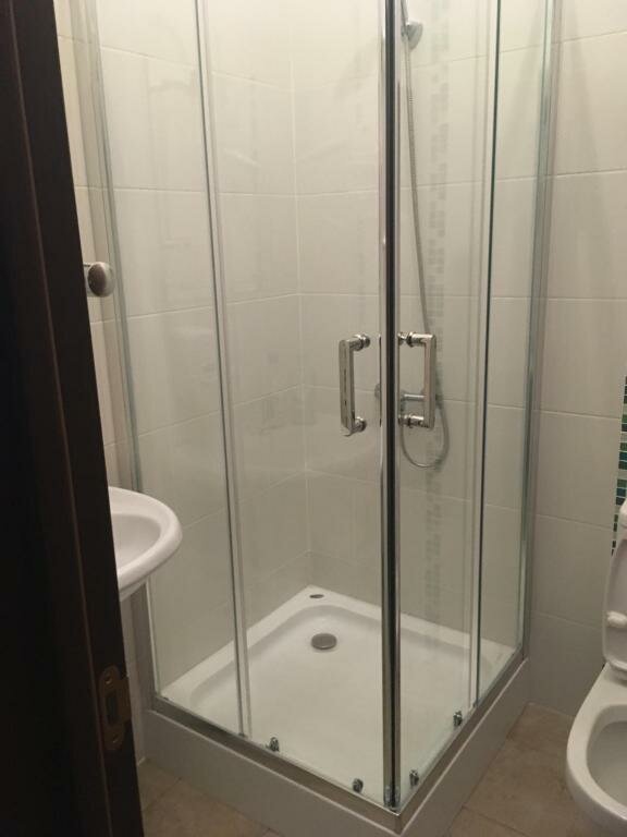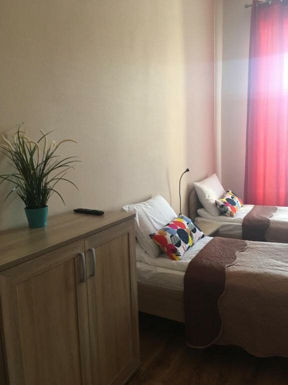 Коммунальная квартира, с отдельными санузлами и душевыми. Комнаты были чистые, постельное белье, полотенца- без нареканий! Есть посуда, микроволновка, холодильник на общей кухне. Много пыли в местах общего пользования на горизонтальных поверхностях: плинтуса на плитке, полочка рядом с душем, трубы, холодильник на кухне. Уборщица халтурит!