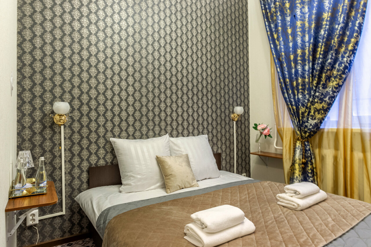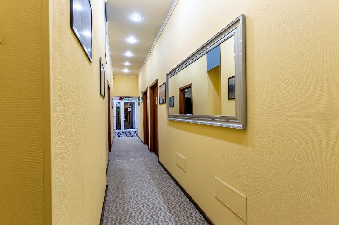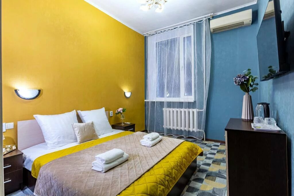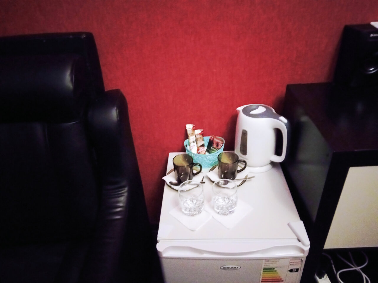 Небольшой отель на первом этаже жилого дома. Производит неприятное впечатление. Серые стены, полотенца старые, ощущение что стиранные, но по хорошему можно использовать для тряпок. Покрывала на кровати в пятна, вторая кровать была не застрелена Постельное белье синтетических неприятное на ощупь, стола нет, Из плюсов в коридоре микроволновка, посуда, есть баллон с питьевой водой.