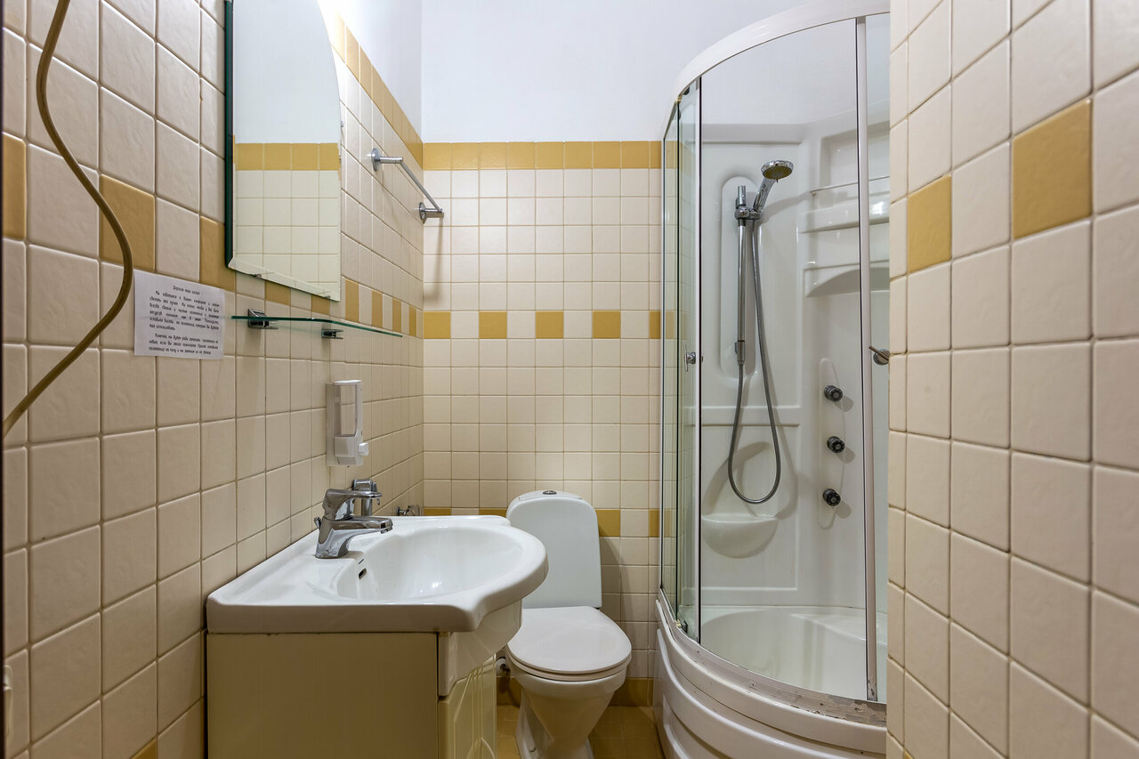 - Чистый санузел, полотенца, фен, одноразовые наборы для душа.