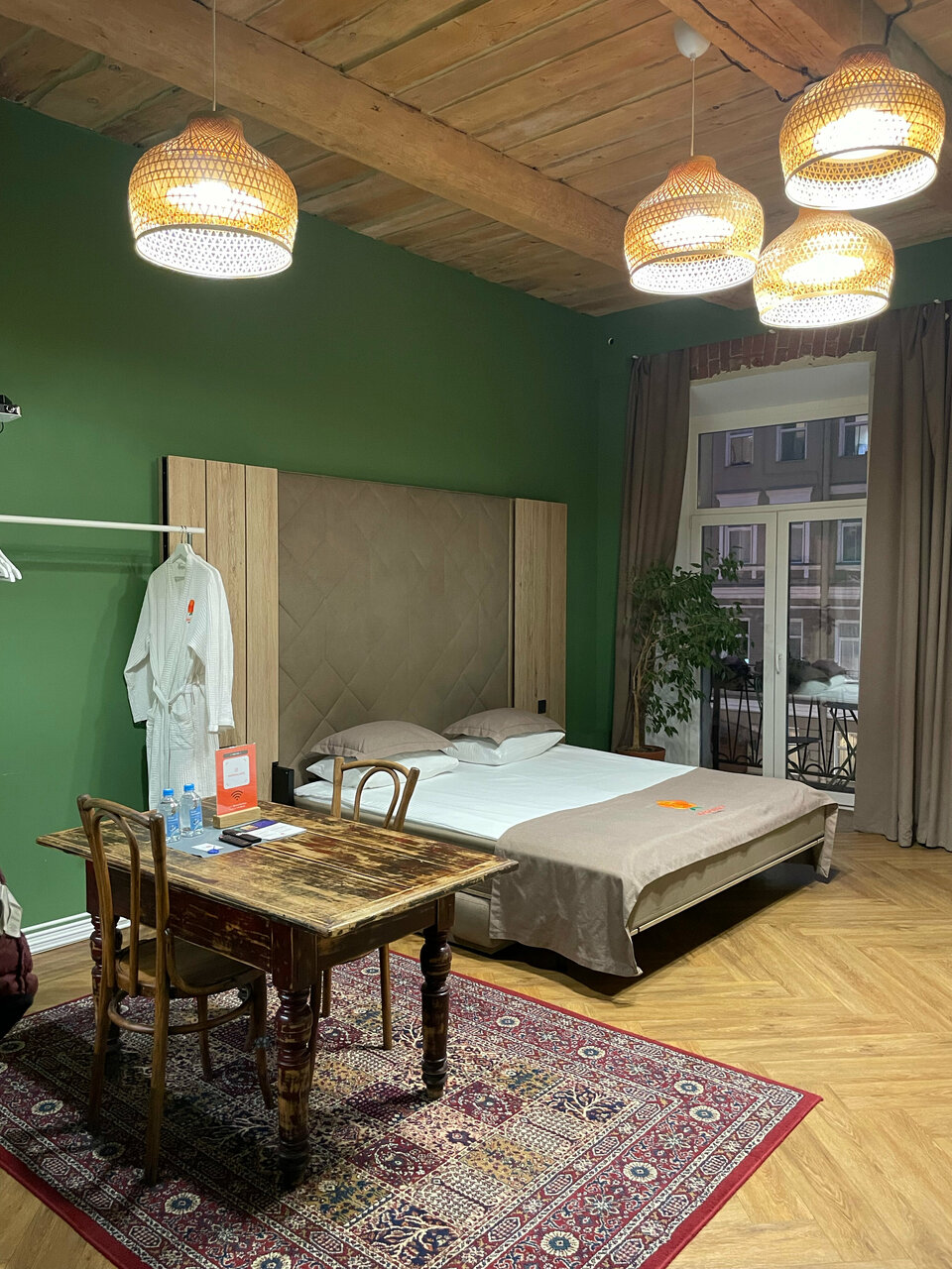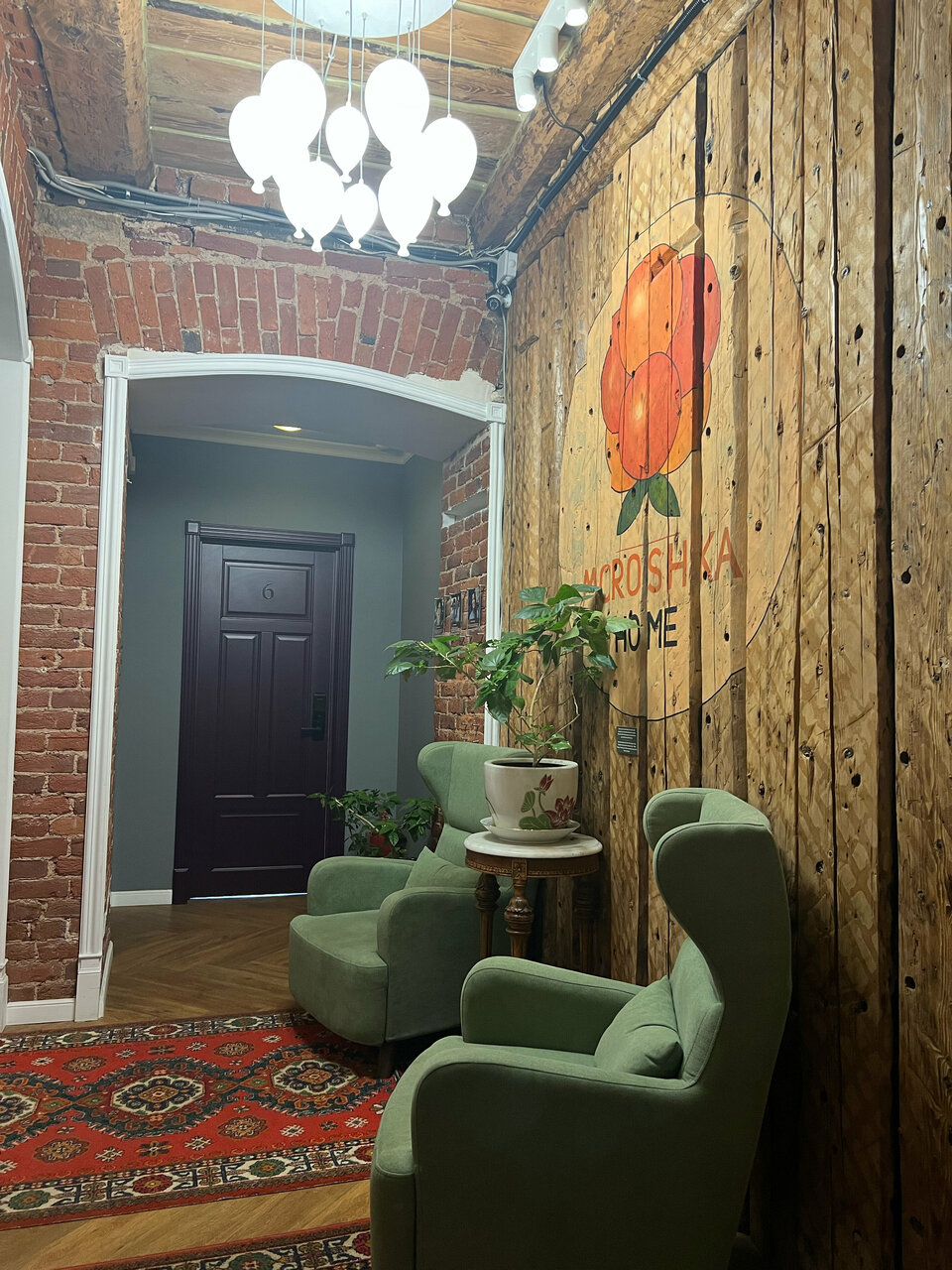 Долго искала хорошие апарты с видом и балконом! Морошка это просто находка) очень хорошие расположение 1 минут до метро! Балкон с цветами и приятной мебелью)))Чистота в номере на высокой высоте, пол на столько чистый, что даже тапочки забываешь одевать Ребята очень ответственно подходят к своей работе, заселение происходит дистанционно. Можно заказать завтрак в номер, недорогой и очень вкусный! Готовят и приносят в номер в удобное для тебя время с 9 до 10. Антон(хозяин апартаментов) всегда на связи и готов ответить на все вопросы по проживанию. В номере разная старинная мебель! Есть радиола с пластинками) Очень зашёл проектор, по-новому посмотрели на этот гаджет! Рекомендую для проживания, так как за все время проживания были только лайки