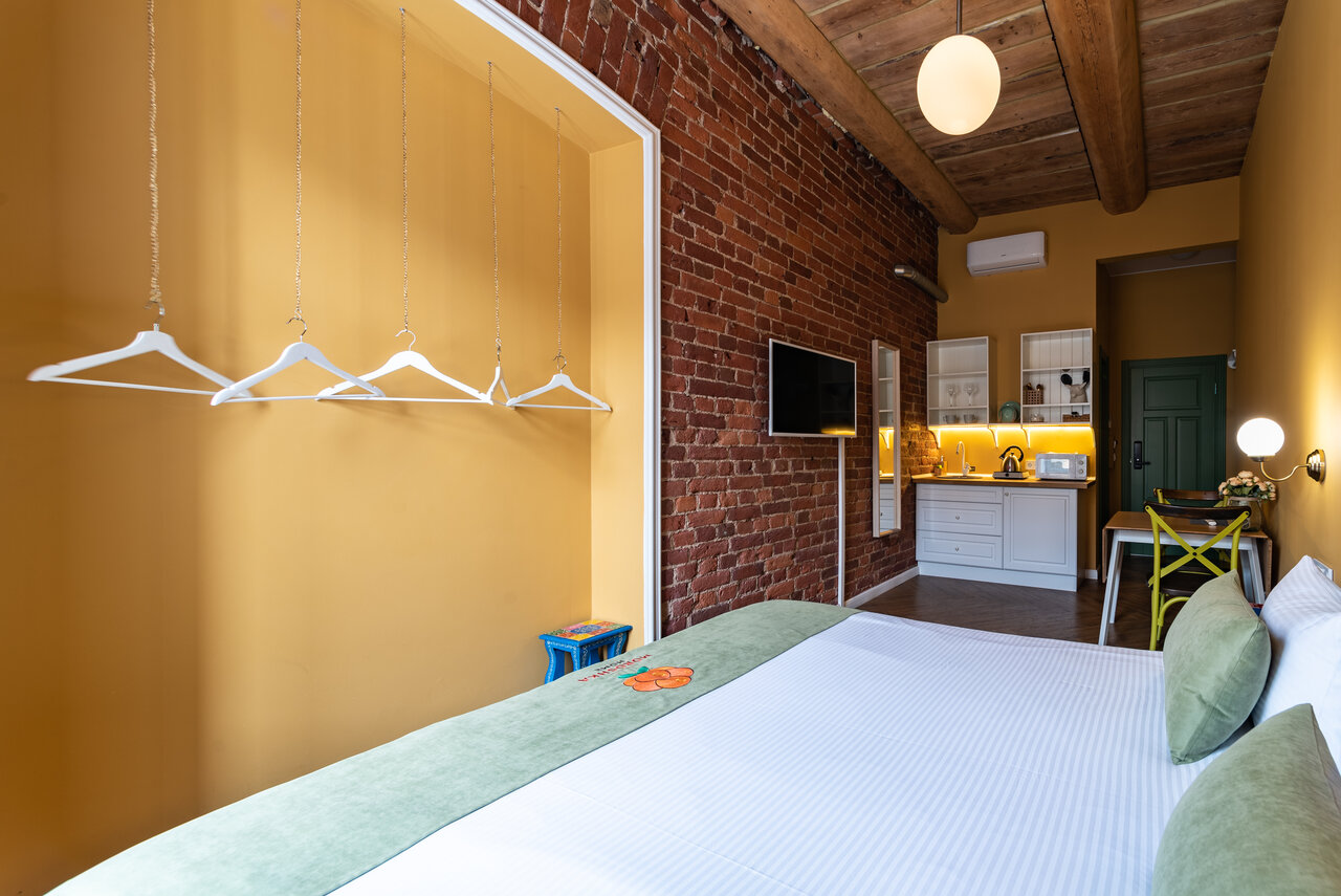 Очень крутая локация! Номер студия большой просторный, стильный и очень уютный! Есть кухня и все необходимое. Приветливый персонал!!! Спасибо!