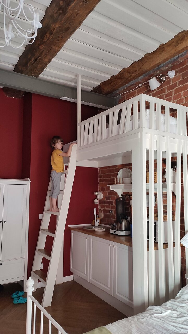 Потрясающее место) Останавливалась с сыном 7 лет на 3 ночи. От вокзала минут 15 пешком. Самостоятельное заселение. Удобный матрас, экстра подушки по моей просьбе, большое теплое одеяло. На кухне достаточно посуды для готовки. Есть утюг с доской, сушилки для обуви, маски, мицеллярная вода и прочие предметы гигиены в ванной. Очень уютно и комфортно . Совершенно не к чему придраться) Владельцы всегда на связи.