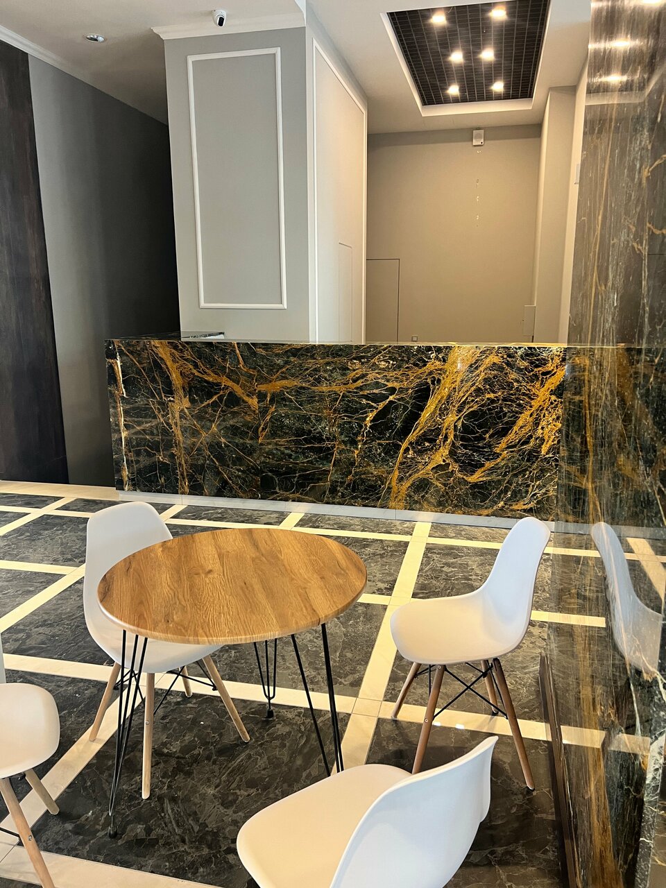 Красивый комплекс, с парковочной площадкой, бесшумные лифты, близко от центра, из минусом пока нет магазинов с товарами первой необходимости, но есть автоматы с едой и кофе, гости, которые уже останавливались довольны локацией и самим комплеесом