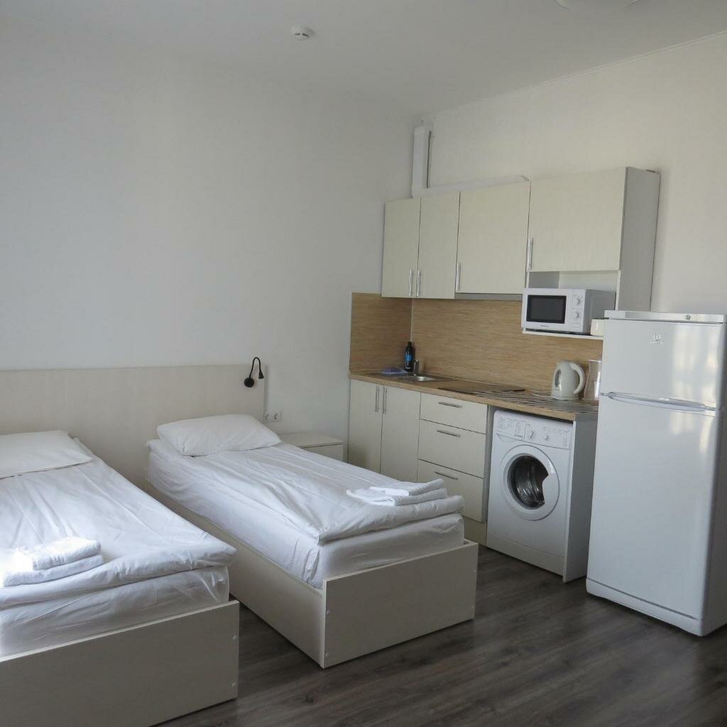 - Удобные номера с необходимой техникой (холодильник, плита, чайник, микроволновка, стиральная машина, кондиционер).