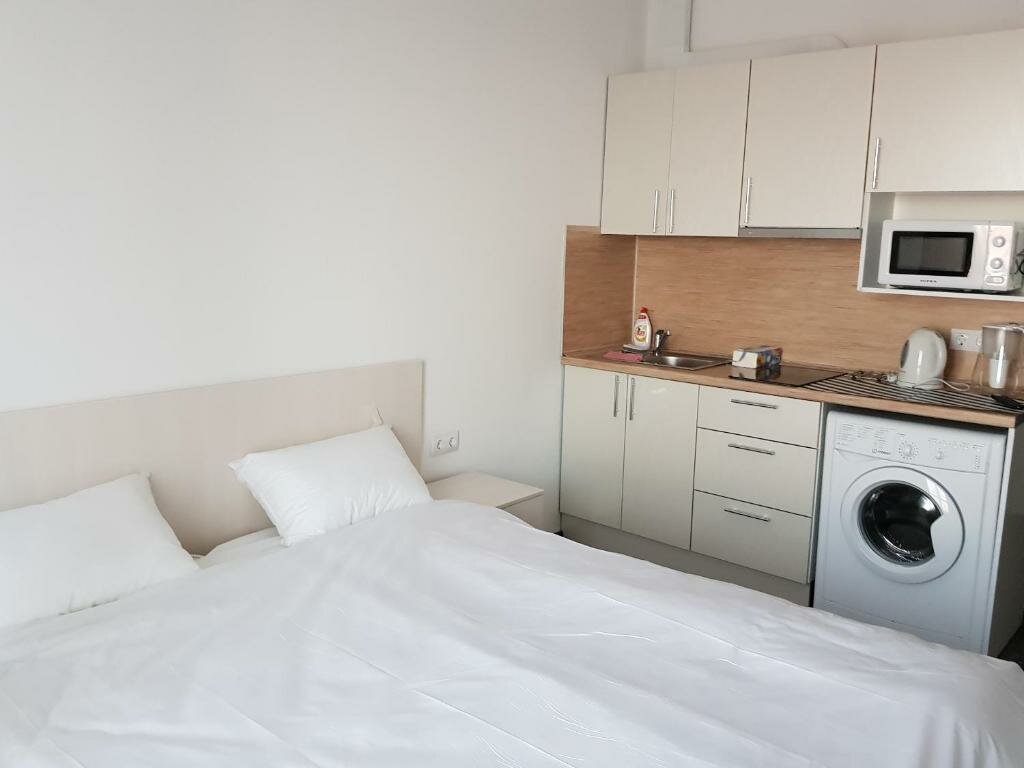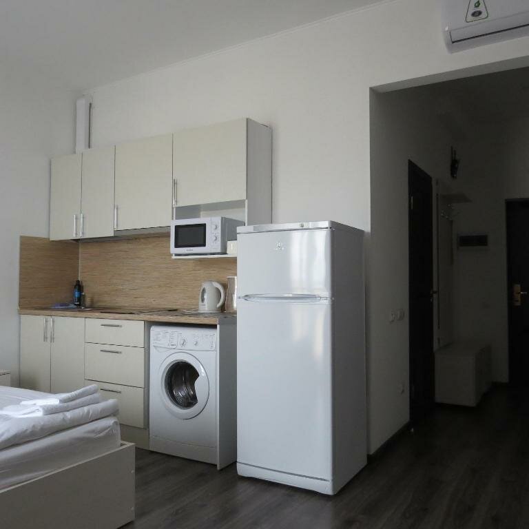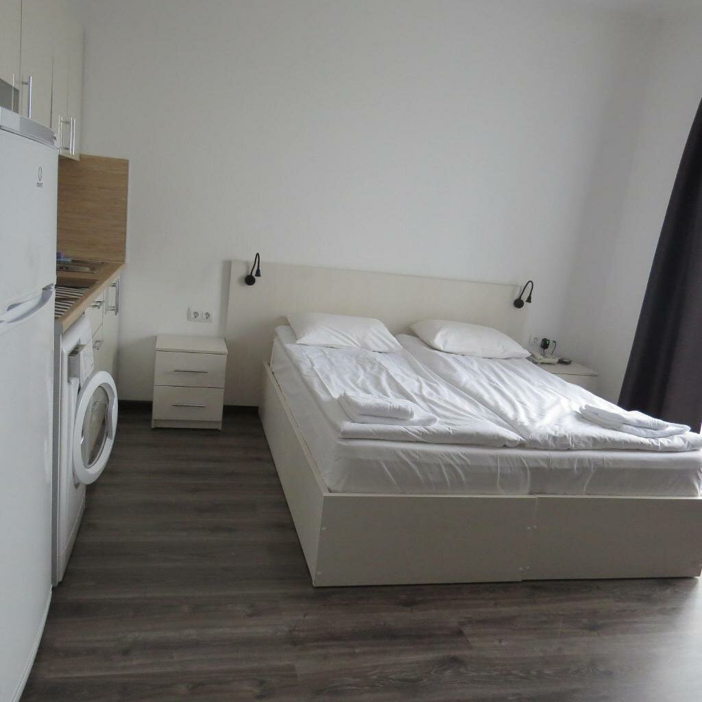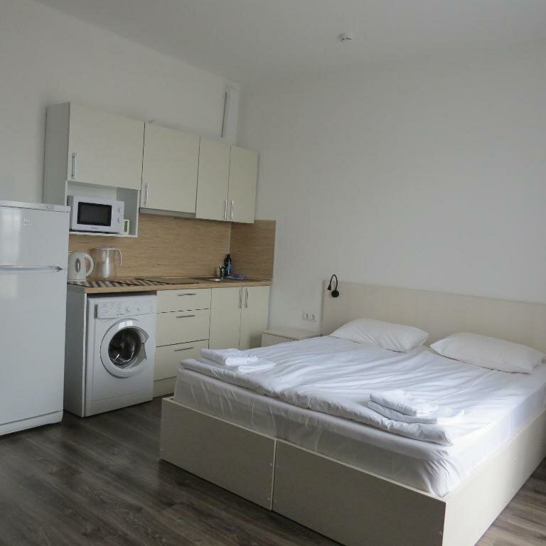Отличное место! Для двоих прекрасный номер, новенький. Есть миникухня/ стиральн машина. Тихий район. До центра 15-20 мин. Есть консьерж. Убирают.