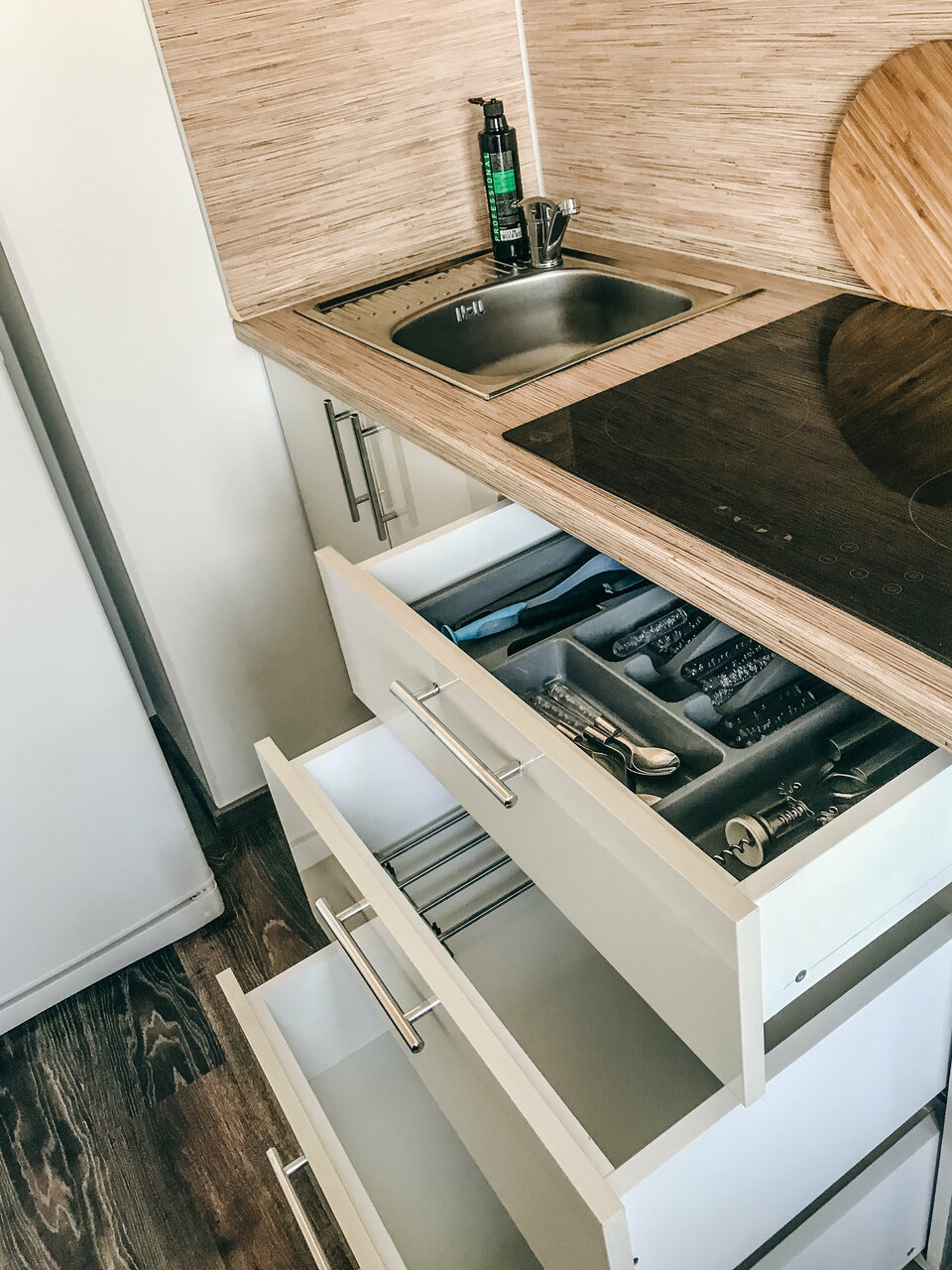 Останавливались на одну ночь. Номер удобный, всё есть: холодильник, плита, чайник, нормальный матрас. Требуется хорошая уборка — жирные следы вокруг плиты неприятны, низ шкафов тоже грязный.