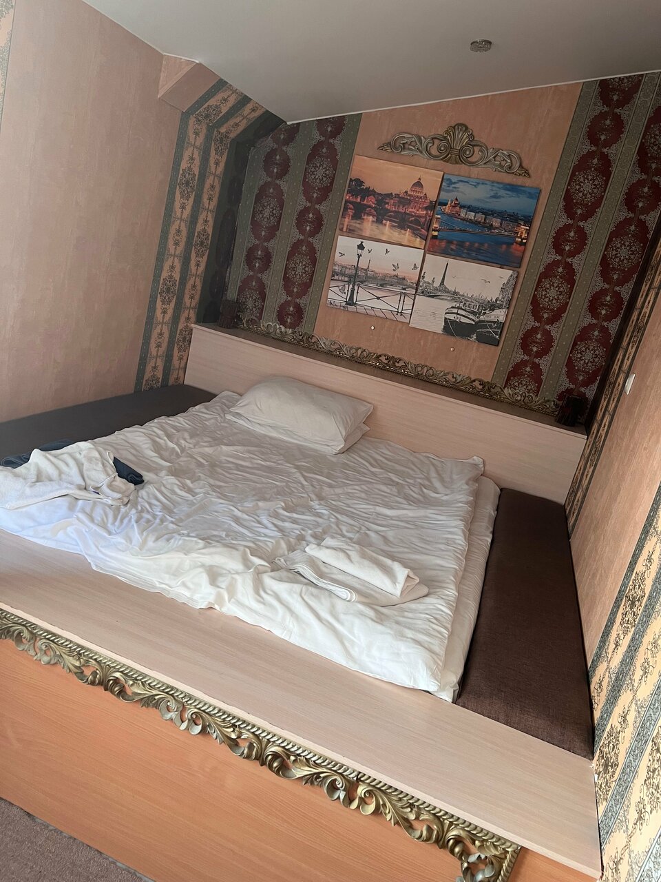 Некогда сюда не селитесь даже на два часа. Вас ждет пыль,раздолбаные кровате с пружиными. Хорошо если они будут а то Ваш попец окажется на полу. И отсутсвие штор. Даже цена в 800 руб.это дорого . Время провождения 1 час 35 минут далее бегство….