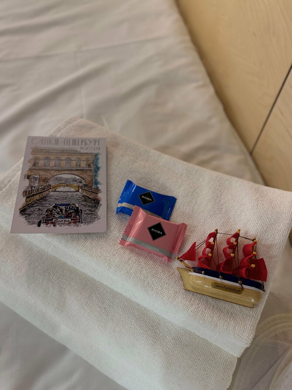 Приезжали в этот отель на праздник Алые паруса! Удобное расположение, прям в самом центре Питера, все достопримечательности в шаговой доступности. Сам номер компактный и уютный, оснащен функцией умный дом, что очень удобно. В нем есть все самое необходимое: чайник, щетки и все косметические средства. И что меня очень порадовало-раковина и зеркало были отдельно от ванной комнаты! Это очень упрощает сборы на прогулку при отдыхе с мужем. Бонусом — приятный подарочек на память об алых парусах и Питере открытка и магнит Очень душевно и приятно! Обязательно сюда вернусь!