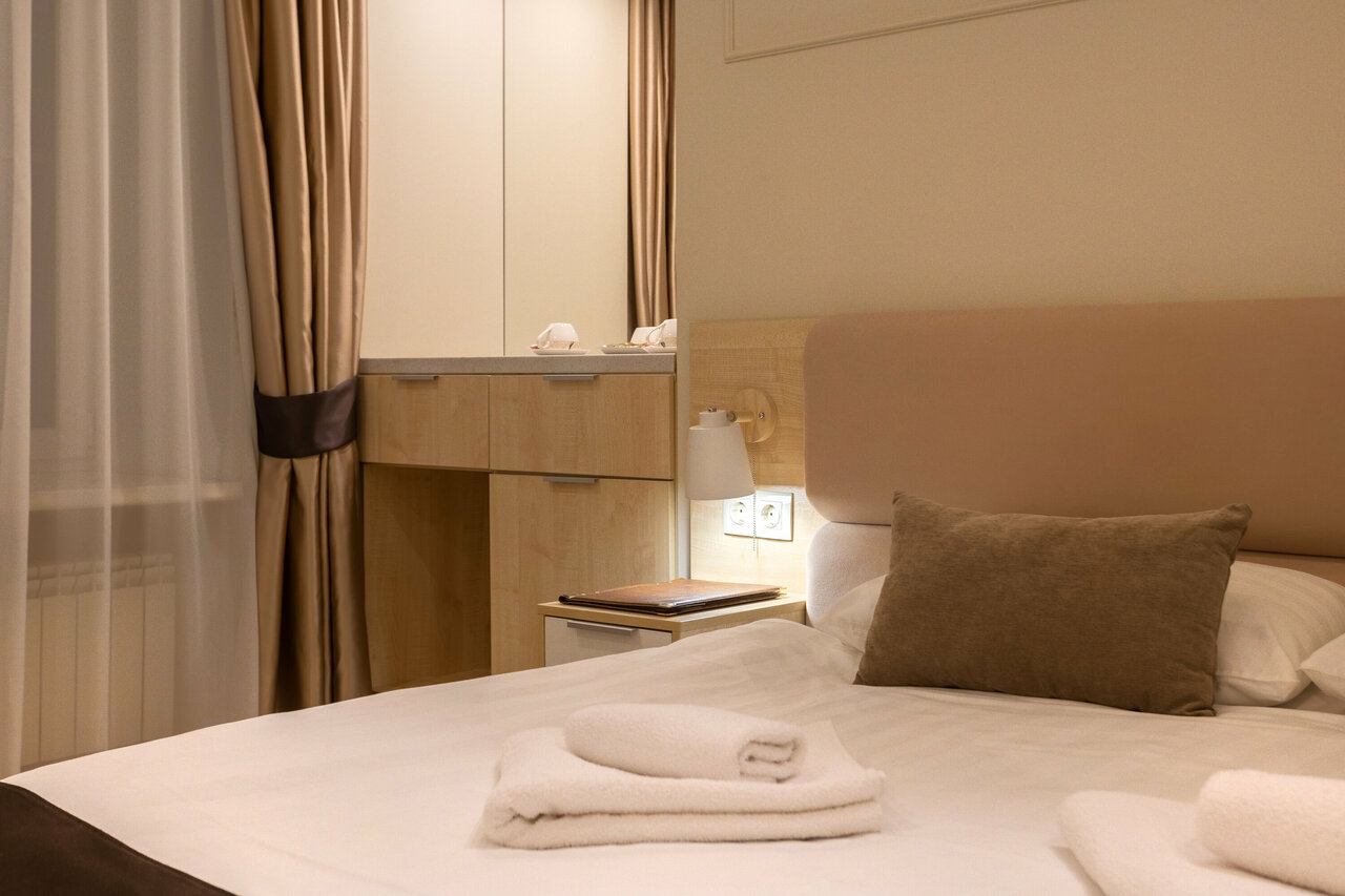 Отличное расположение, приветливый и отзывчивый персонал. Но из минусов очень сильная слышимость, вплоть до храпа и разговоров из соседнего номера и это при том что работает телевизор и тд. И старая мебель в номерах. Бронировало через букинг, фото и реальность конечно не совпали) но это не омрачило ничего.