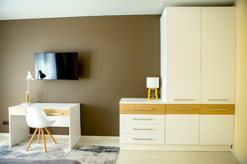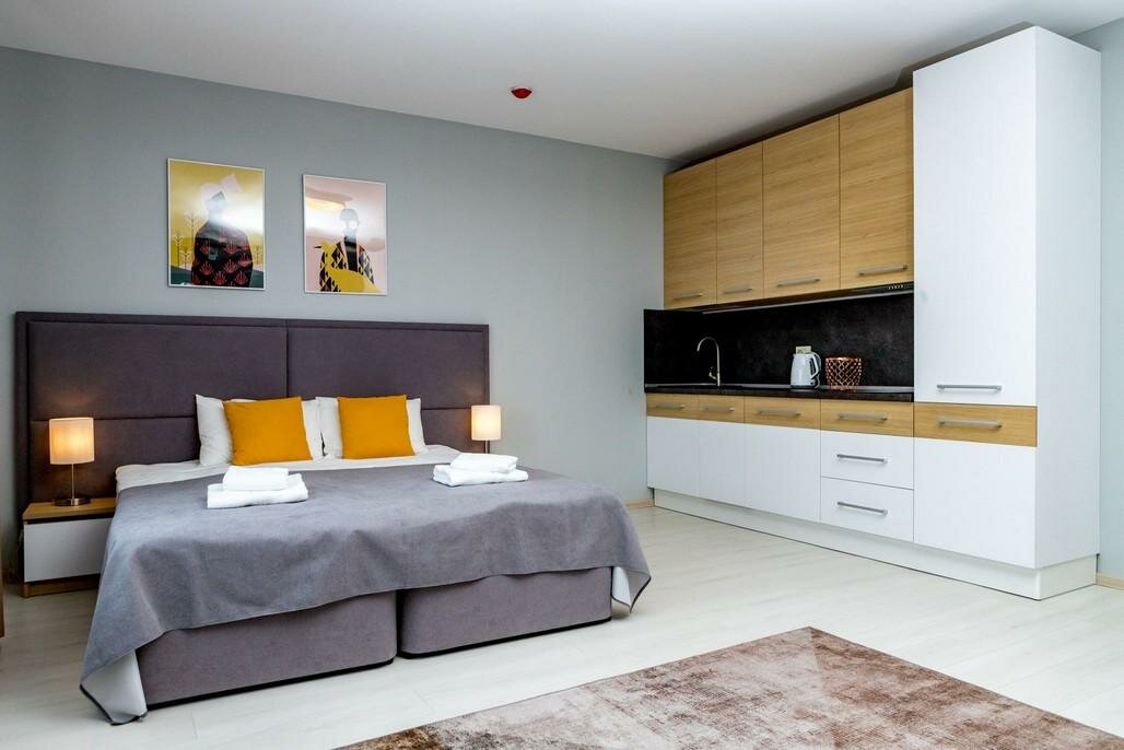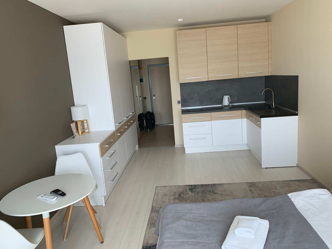 Отличные апартаменты, нам очень понравилось, в номере всё что нужно, холодильник, чайник, плита, микроволновка, утюг, фен, посудомойка, стиралка, сушилка, гладильная доска, телевизор. Всё новое. Хороший отель