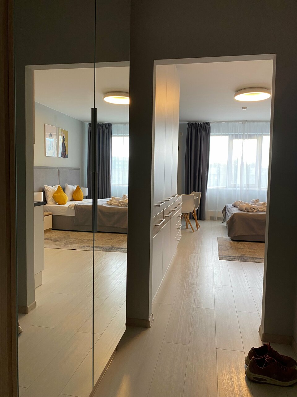 Останавливался по командировке на 5 дней, всё очень понравилось, чисто, тихо, современно. Недалеко от метро Василеостровская. Обязательно выберу данные апартаменты в следующий раз.