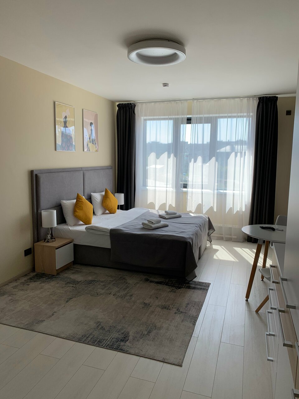 Отличные апартаменты, есть всё необходимое, чисто, удобная кровать, отличное постельное. Совсем недалеко от остановки общественного транспорта.