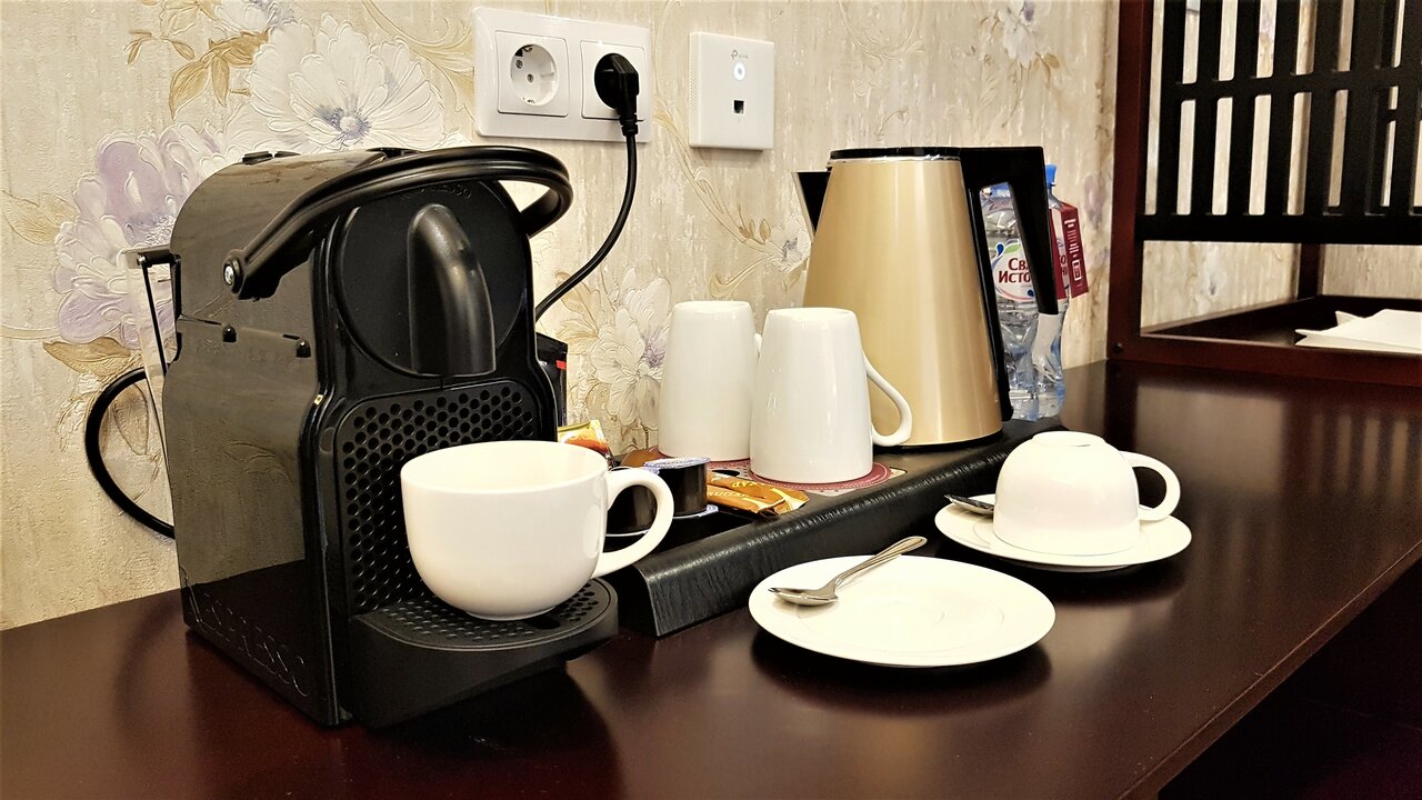 - В номерах есть все необходимое (косметика, халаты, чайник, кофемашина).