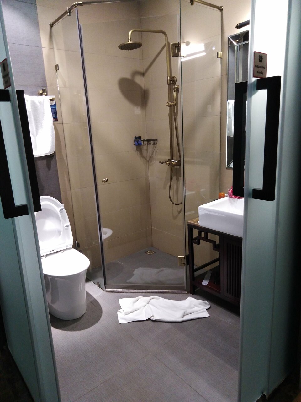 Плюсы: Первое впечатление при входе — хороший дизайн и красиво. Приветливый персонал на ресепшене. Интересное решение на входе в номер — информационная электротабличка. В номере есть клавиши — типа ‘нужно убраться’ и ‘не беспокоить’, и на табличке загорается информация. Минусы: в номере — дверь душевой кабинки подтекала, слив в кабинке был похоже с обратным наклоном и всегда оставалась стоять вода. Номер потертый и поцарапаный. И самое плохое — каждый час надо перезагружать интернет!