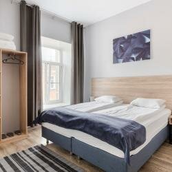 Отличное сочетание цена-качество, расположение супер, маркеты, кафе, столовки, метро- всё рядом. Номера хорошие с минимальным набором посуды(тарелки, бокалы, сковородка, кастрюля, приборы), чай, кофе(пополняли), завтракали в номере. Санузел свежий, чистый, шампунь и гель пополняли, ж.мыло. Но было ощущение, что пол не мыли, мы ходили в одноразовых тапках, нас не напрягало, т.к. в номере находились очень мало. В номере тепло, даже жарко, были в конце ноября. В общем туалете стиралка с порошком, была занята, так горничная сама в номер пришла и забрала бельё в стирку. В коридоре 2 гладилки с утюгами, кофейный автомат. Поездка была отличной!