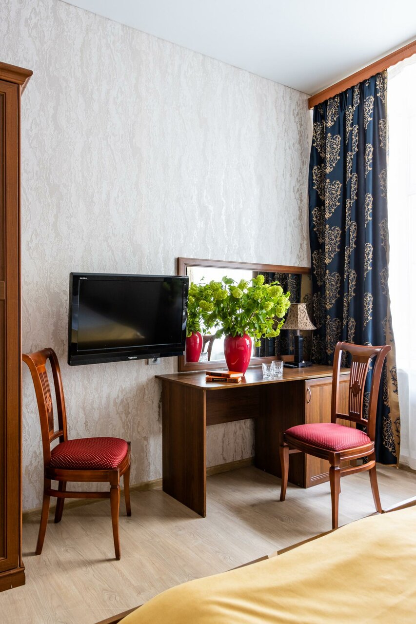 Расположение отличное. Вид из окна живописный. Качество оконной рамы на уровне. Мест для хранения предостаточно. Кровать удобная. Зеркала, подоконник сантехника идеально чистые. Номер просторный. Чашки для чая и бокалы новые, натертые до блеска. Решили не пользваться и попили бутылированной воды. Вода была вкусная. Спасибо за беруши. Хотя шумоизоляция качественная. Просто подстраховались. Спасибо за возможность оставить багаж после выселен ия (2 часа то что было нам нужно). Персонал вежливый и отзывчивый. Все очень душевно. Самое приятное никаких посторонних запахов. Мебель стильная под старину, освещение многоуровневое. Не менее стильное. Если бы задержались, то попросила бы лампу в потолочном светильнике поменять с холодного на теплый свет. И хотя душевая кабина это гигиенично для гостиниц, мне непривычно было.
