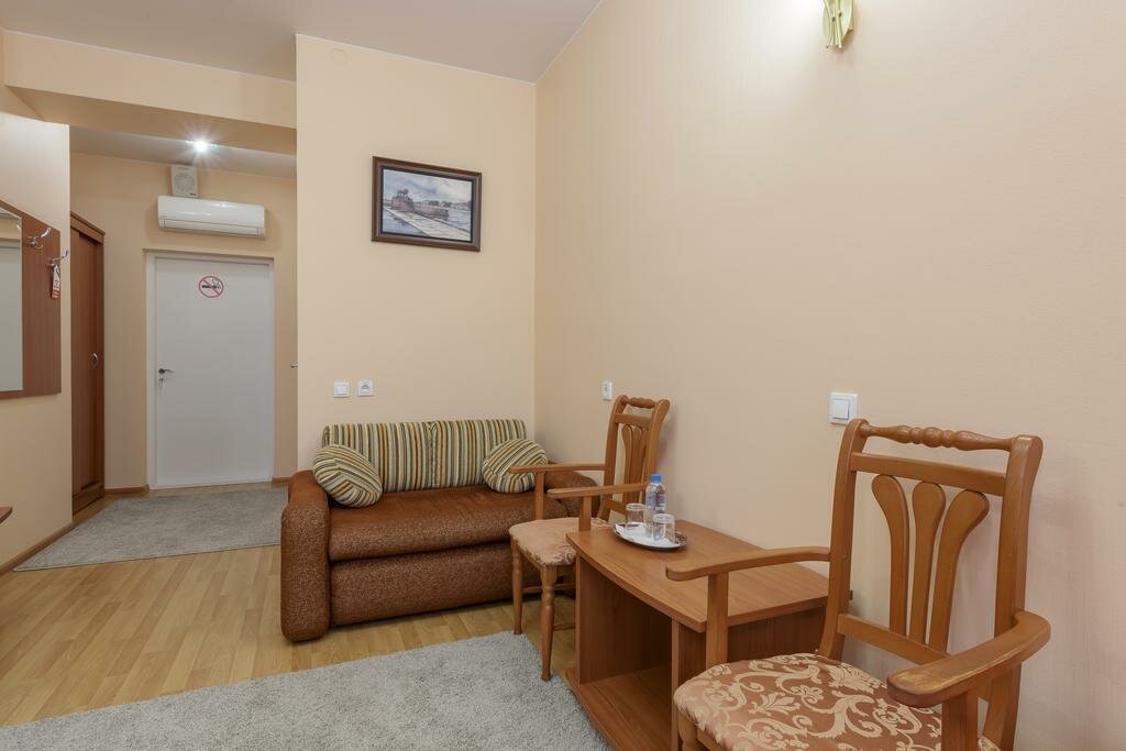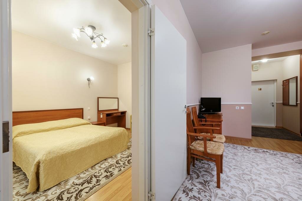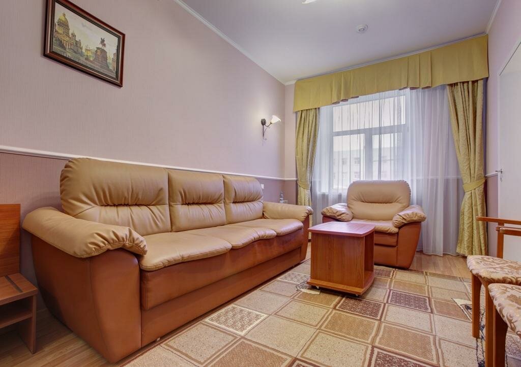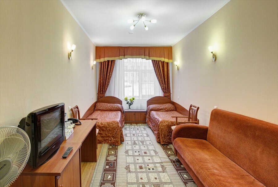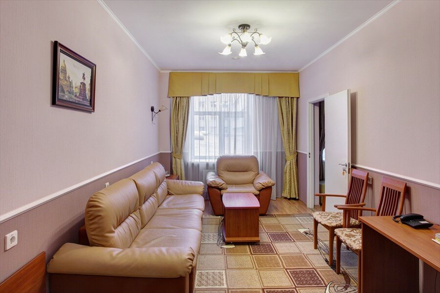 Доброго всем времени суток! Начну с того, что прилетел в Питер ночью, багаж не долетел, голодный и злой… Встретили, как родного! Заселили в люкс (с халатом, тапками и всем, что нужно для жизни), разница в цене небольшая. А администратор ещё и накормила(и это всё ночью). Выдаются талоны на питание завтрак и обед (или ужин). Цена от 4’500 до 5’500. Что интересно, что в номере эконом есть две кровати и доплата за второго человека всего 500 рублей! Сразу скажу всё просто, но чисто и честно. Без мега ремонта. Если с претензиями, то вам не сюда. Для командировочного нормально!