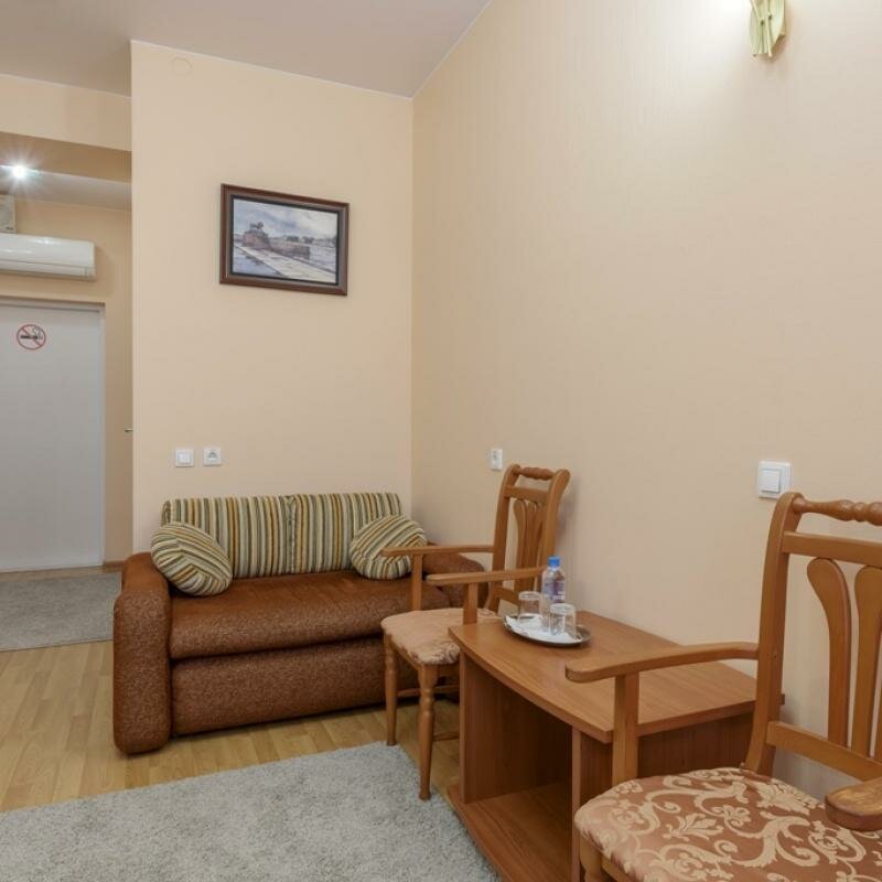 Небольшой уютный отель. Прекрасная обстановка, вежливый общительный персонал. Неплохое кафе на первом этаже, где по талонам на питание можно вкусно поесть. Отлично для командировок!