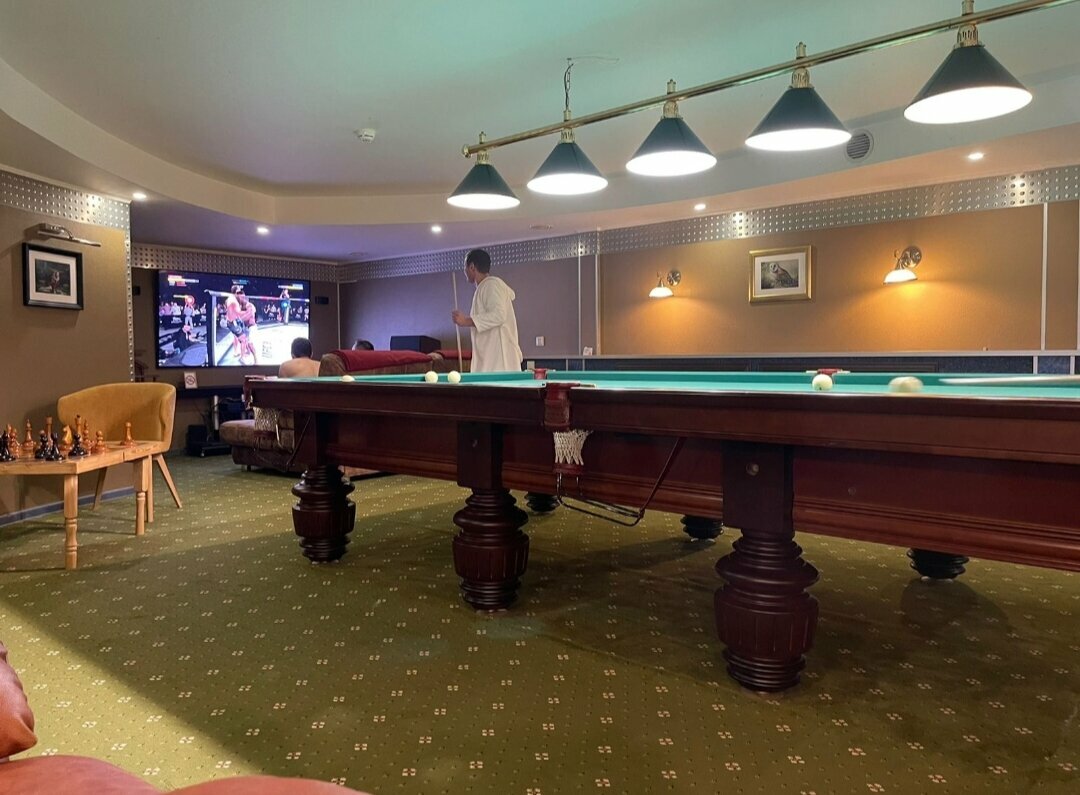 Отличная сауна! Много места, кроме ‘финской’ сауны, есть ‘хаммам’ и бассейн, большой стол, везде чисто… Есть приставка, караоке, бильярд, большие шахматы, в общем можно нескучно провести время.