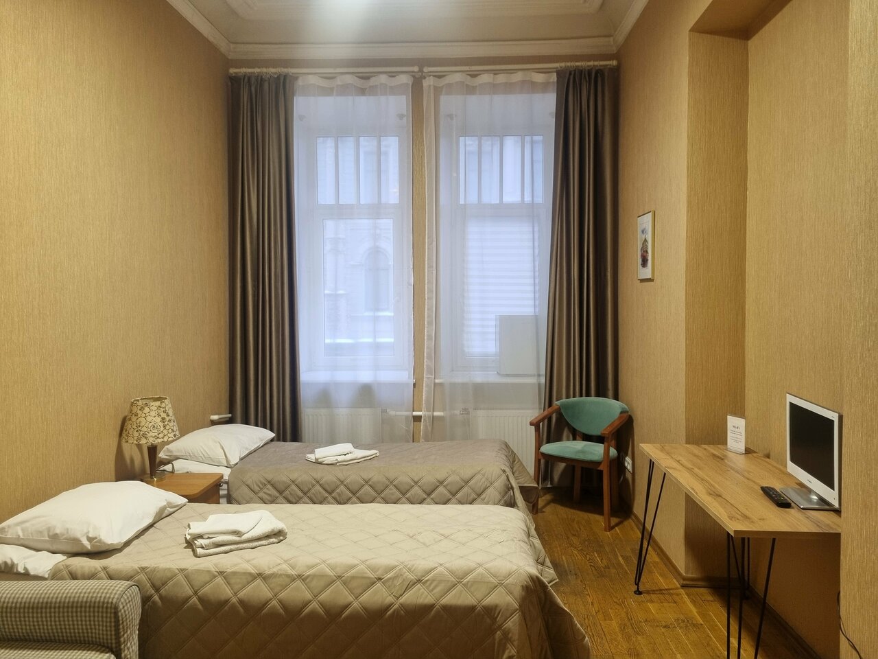- Наличие чая, кофе, кулера, микроволновки.; Чистые и уютные номера.; Вежливый и приветливый персонал.; Ежедневная уборка.; Исторический интерьер (высокие потолки, лепнина, старинные детали).