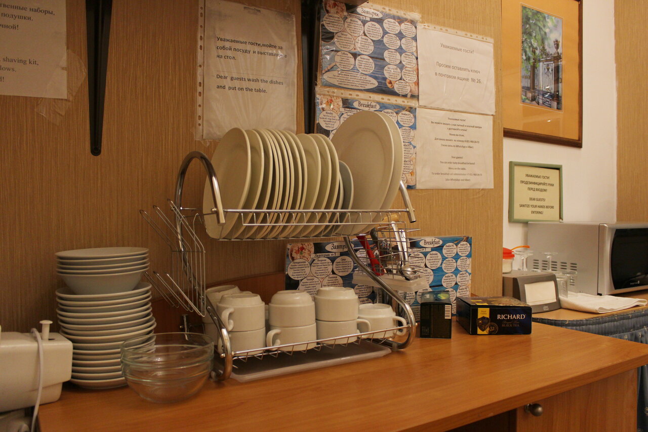 - Наличие чая, кофе, кулера, микроволновки.