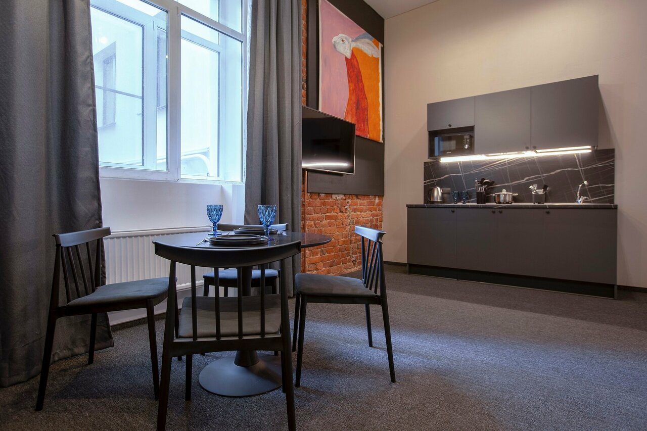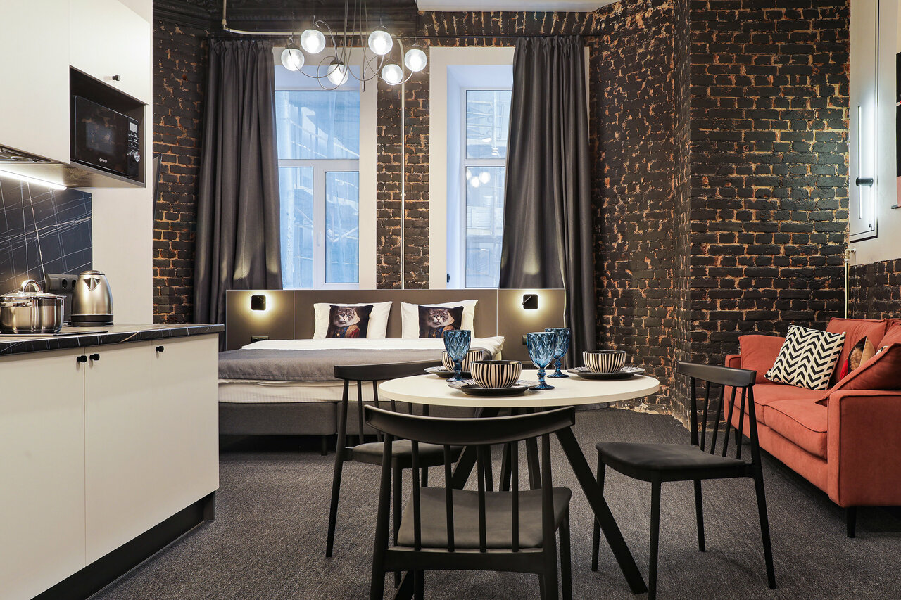 Стильные и функциональные двухкомнатные апартаменты в стиле лофт в историческом центре Санкт-Петербурга. Расположены в отреставрированном здании с уникальной архитектурой и атмосферой старого города.