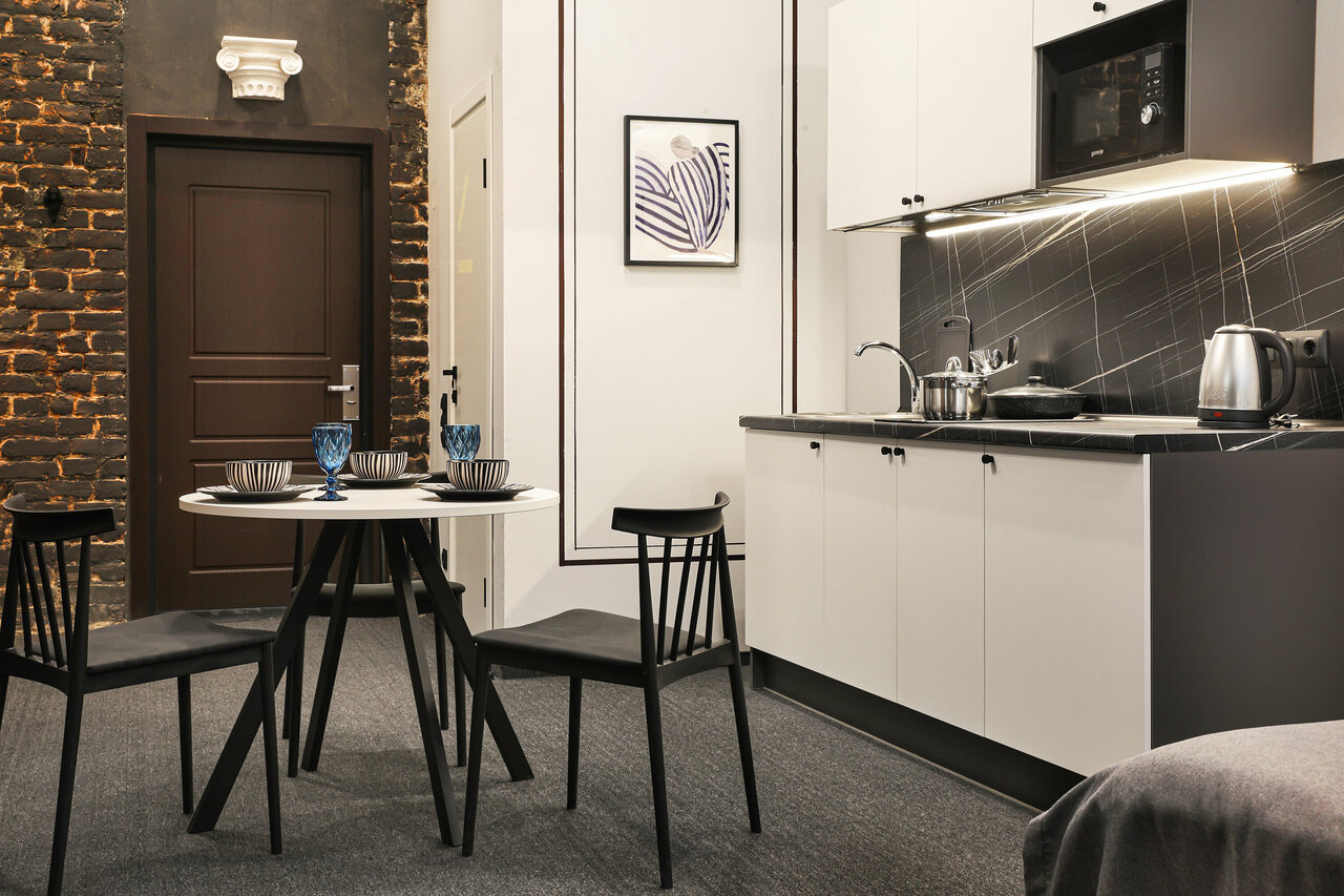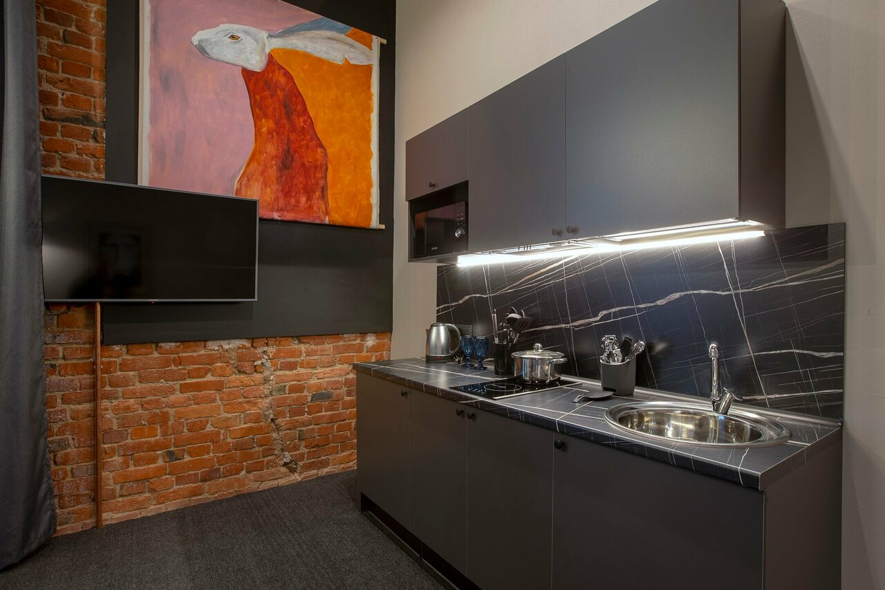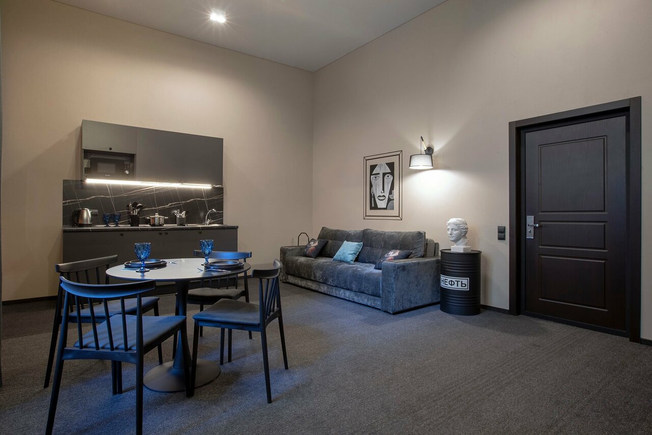 Останавливались здесь на четыре дня и остались в полном восторге! Всё новенькое, лаконичный дизайн с интересной планировкой, высоченные потолки, хорошая звукоизоляция. В апартах было вообще всё необходимое для нашего комфорта! И отдельно, конечно, хотелось бы отметить сервис — быстро заселили, подсказали как добраться и куда можно сходить вечером. Персонал доброжелательный и отзывчивый. Будем рекомендовать всем друзьям, место отличнейшое.