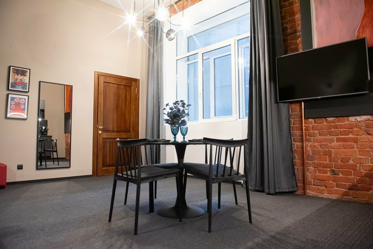 - Хорошая звукоизоляция.; Тихая и спокойная атмосфера.; Удобное расположение (центр города, близко к достопримечательностям).; Высокий уровень сервиса.; Уютный и стильный интерьер.
