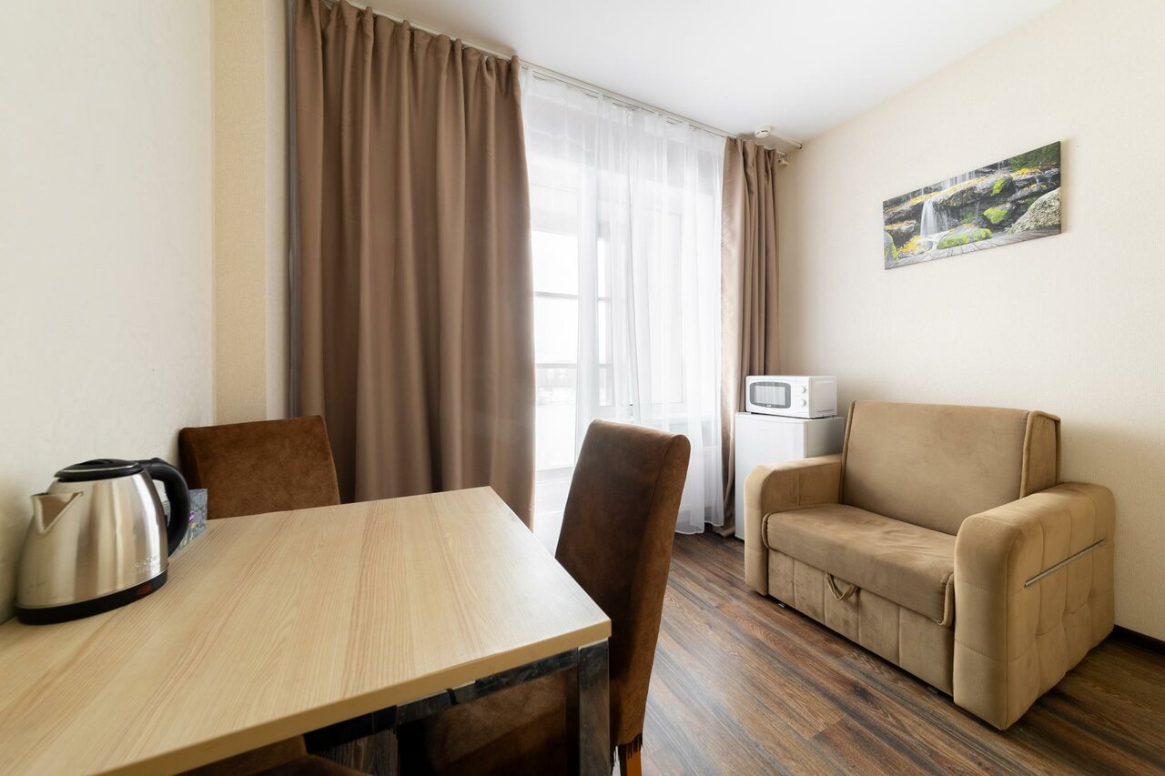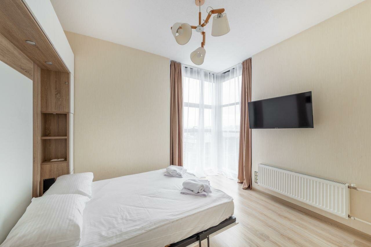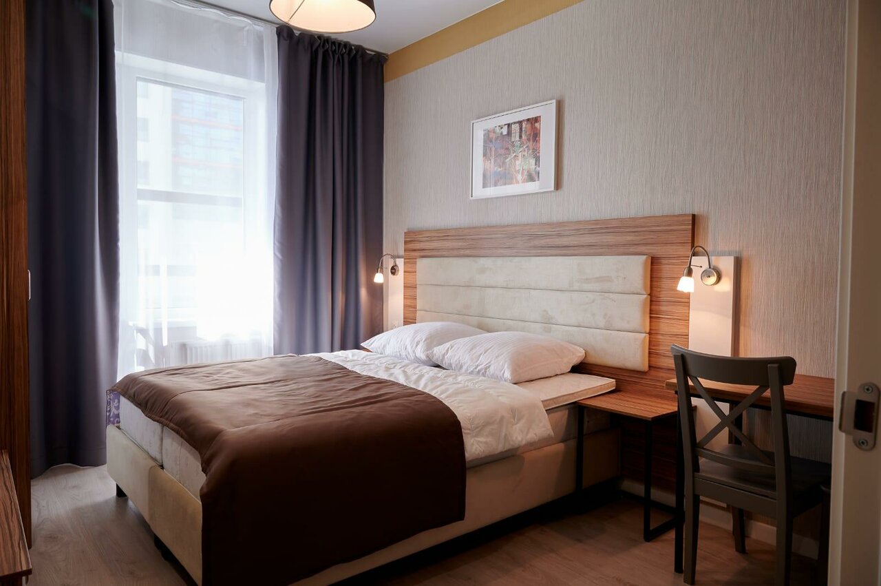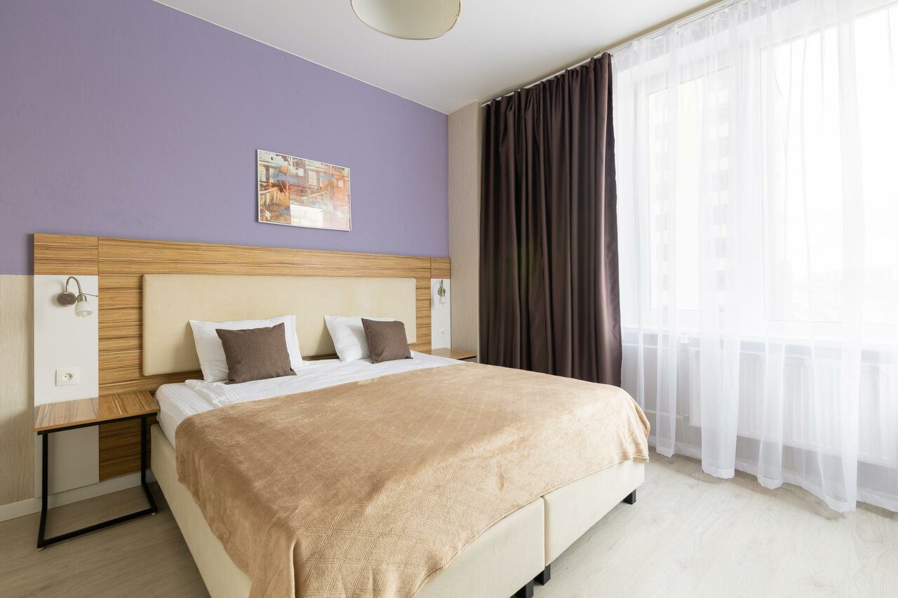 - Уютные, светлые и чистые апартаменты.; Гостеприимные и отзывчивые администраторы.; Хорошо оборудованная кухня.; Отличное расположение (15 минут до метро, 30 минут до центра).; Комфортная комната с приятным интерьером.