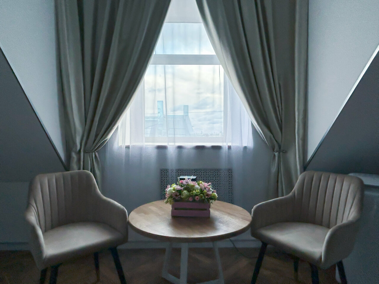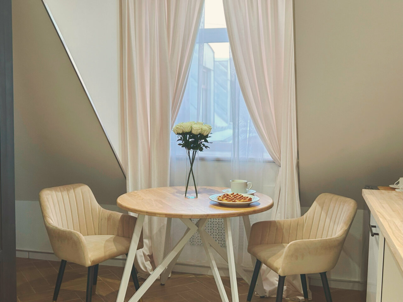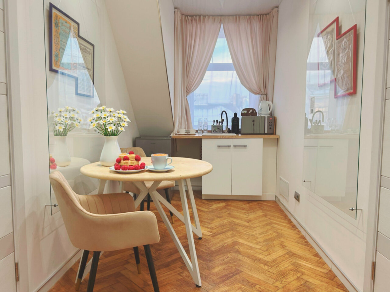 Совершенно новый отель. Шикарная мебель, качественный ремонт. Порадовало наличие Яндекс станции, проектора, кухонной зоны. Есть своя мансарда. Виды из окна потрясающие, на крыши Петербурга. Цена, для этой локации и уровня очень приятны. Рекомендую всем, посетить Бутик Отель. Это восторг!!! Все сто баллов ставлю вам)