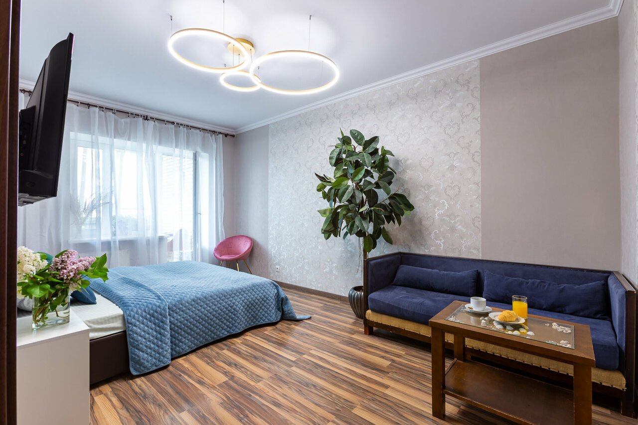 Отличная квартира ! Чистота. Удобная кровать. Балкон супер. Утром смотришь как город просыпается , вечером подсветку зданий , закат красивый . Даже птиц видно )