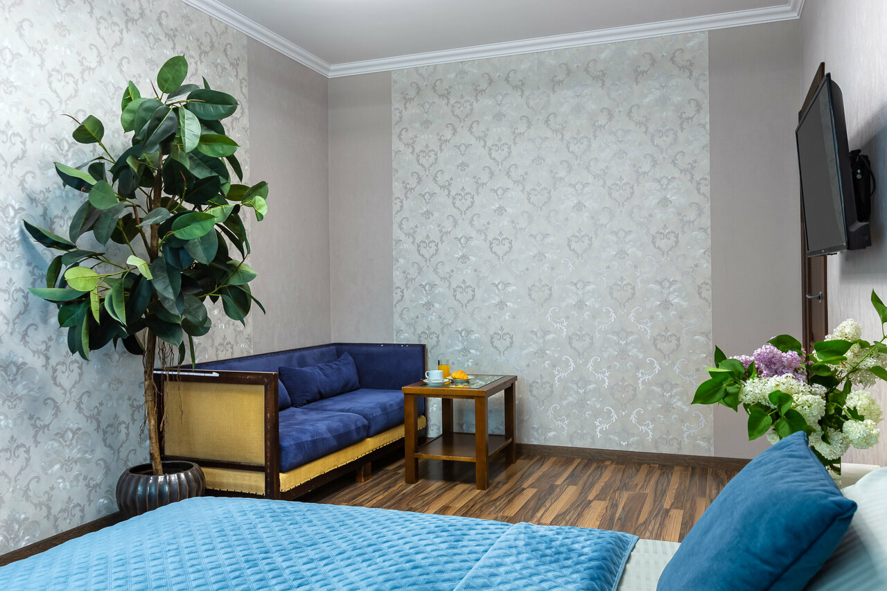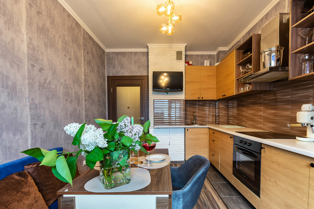Просторная, красивая.Удалённое заселение. Очень хорошо что рядом много кафе, ресторанов пекарни.Было где вкусно покушать. Рекомендуем.