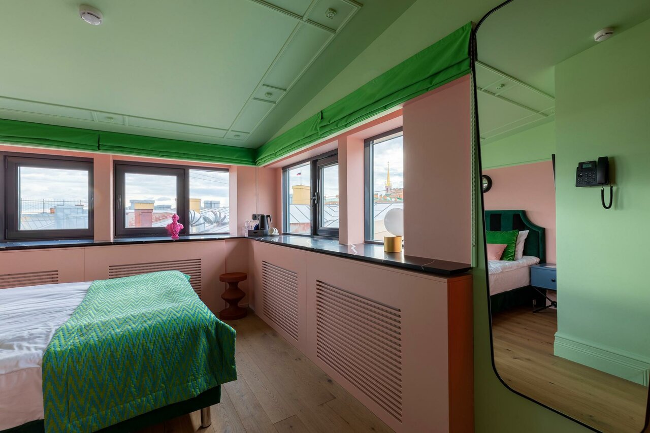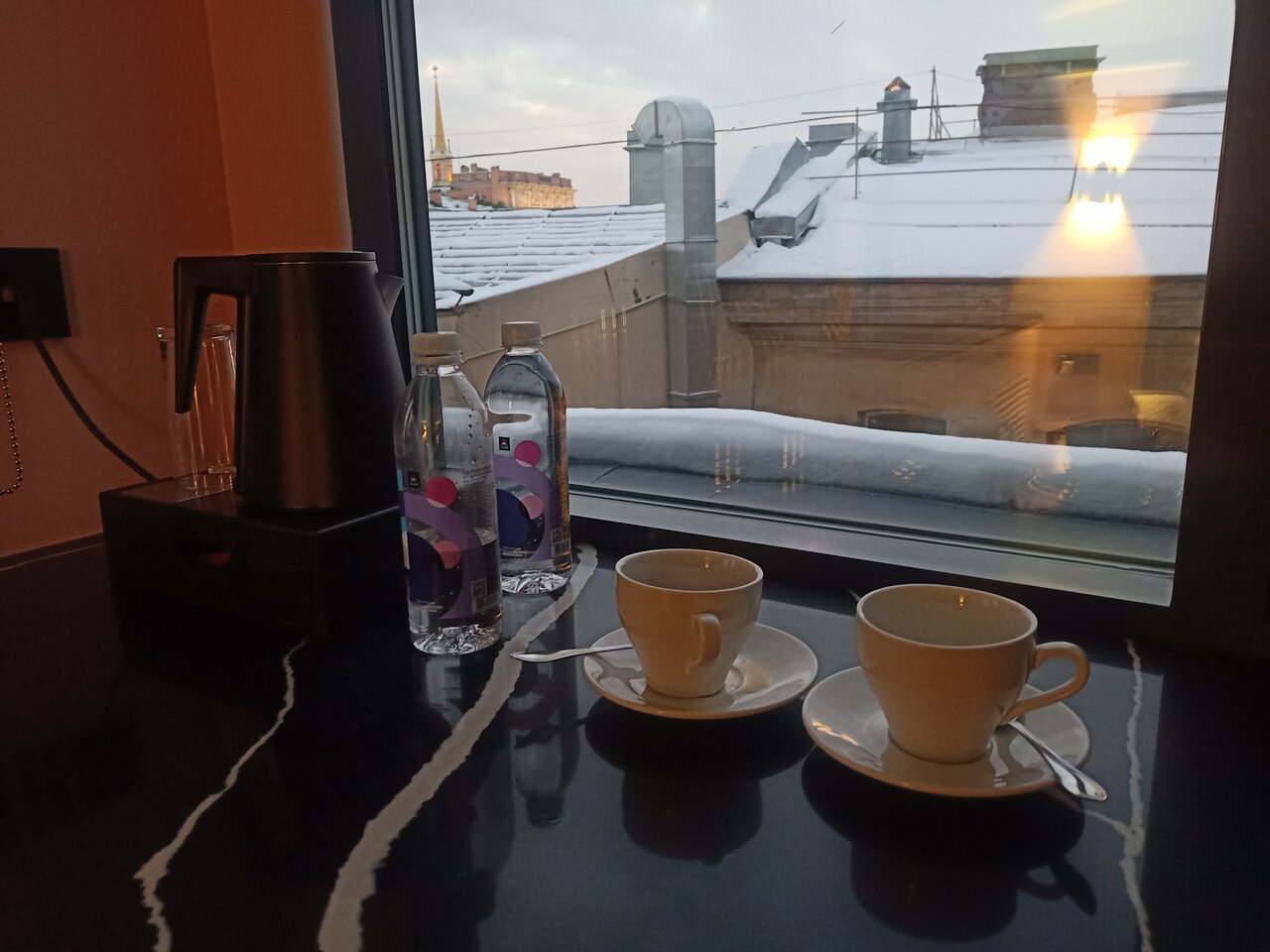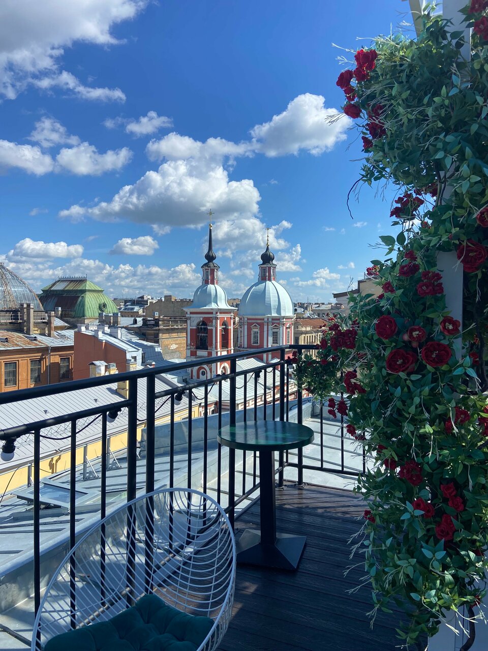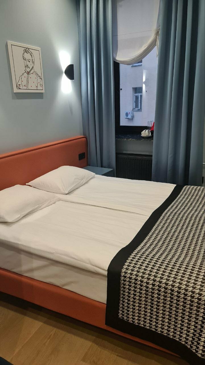 Отель новый красивый стильный! Номер оказался несколько меньше, чем я ожидала и заказанный вид на улицу не случился, к сожалению.. но с учётом того, что времени я в номере провела не много, это не повлияло на качество отдыха. Зато у них невероятная терраса на крыше с прекрасным видом! Расположение вообще прекрасное, на набережной Фонтанки, прямо напротив чижика)) Завтраки можно не заказывать, без них дешевле, и они не особо впечатлили.