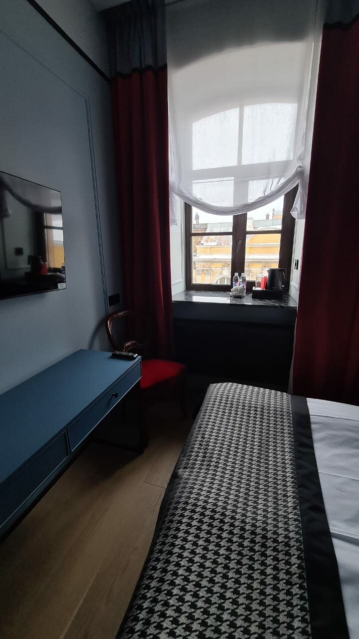 Очень классный отель! Стиль в оформлении интерьеров безупречный везде: от рецепшен и коридоров, до номеров и ресторана. Обслуживание на высоком уровне, вежливый персонал. Хороший ресторан в подвальчике. Расположение в центре очень удобно. 15 минут пешком и вы на Невском!