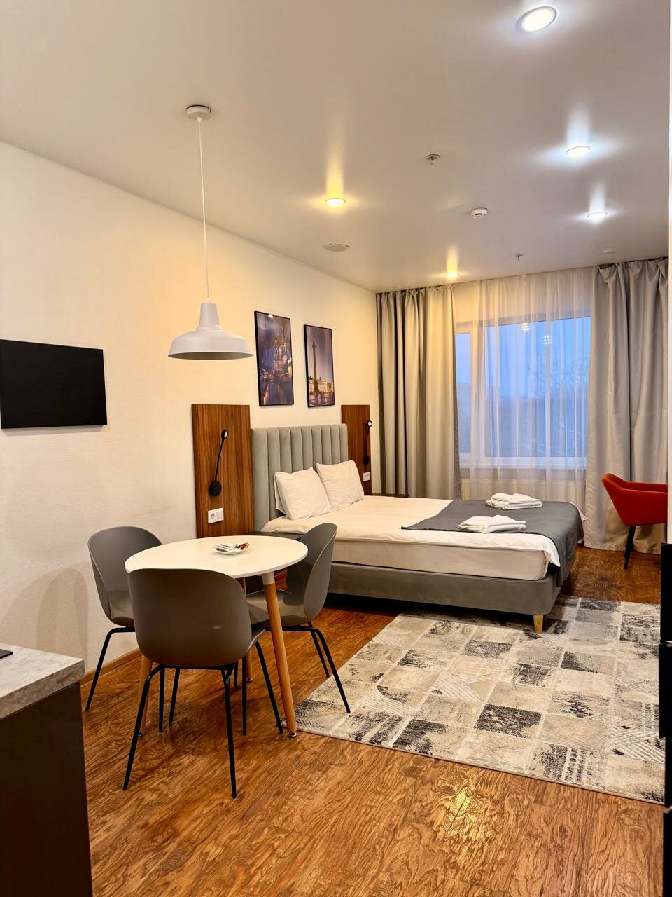Современный отличный отель со свежим ремонтом. От метро 5-7 минут, очень просто найти по адресу, но нужно знать что он находится в Авеню Апартс. Мы приехали раньше времени заселения. Попросили оставить вещи, чтоб не возить их с собой. Нам ответили, что наш номер пока занят, но есть другой. Без проблем заселились в отличном ещё более удобном номере на 7 этаже. Не нашли фен, сказали управляющему и тут же нам его принесли. В номере все супер удобно: хорошая кровать, 2 телевизора, гладилка, машинка стиральная и посудомойка, посуда, чайник… А главное тихо в отеле и номере, не слышно соседей. Я б сказала подходит для длительного проживания. Очень вежливый управляющий, чуткий к любым вопросам. Останавливались в марте 2023г всего за 2670 руб/сутки. За эту цену просто отличный сервис. Всем рекомендую!