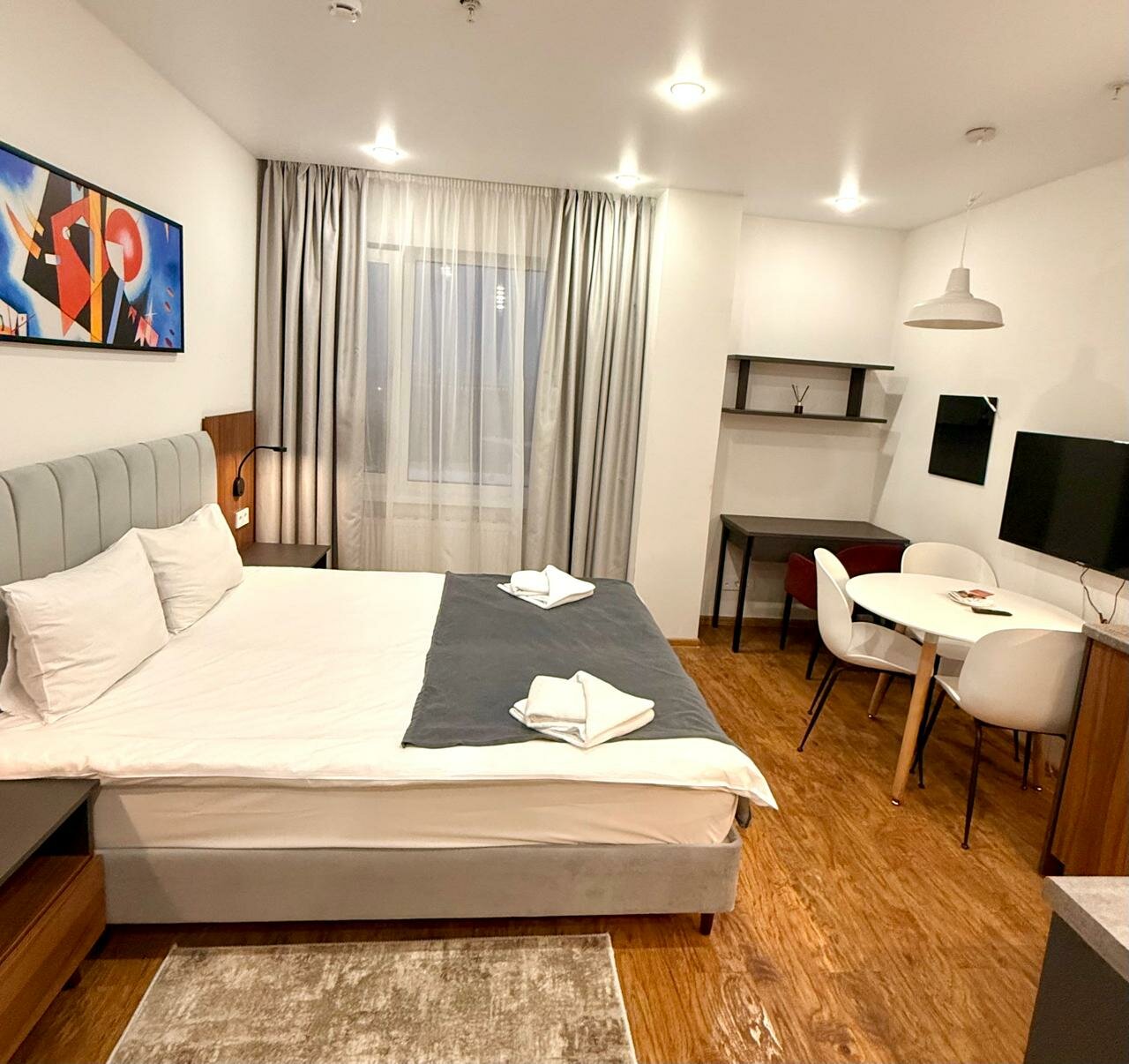 - Комфортные условия.; Беспроблемное заселение.; Вежливый и отзывчивый персонал.; Новый ремонт, современная техника.; Тишина и уют.