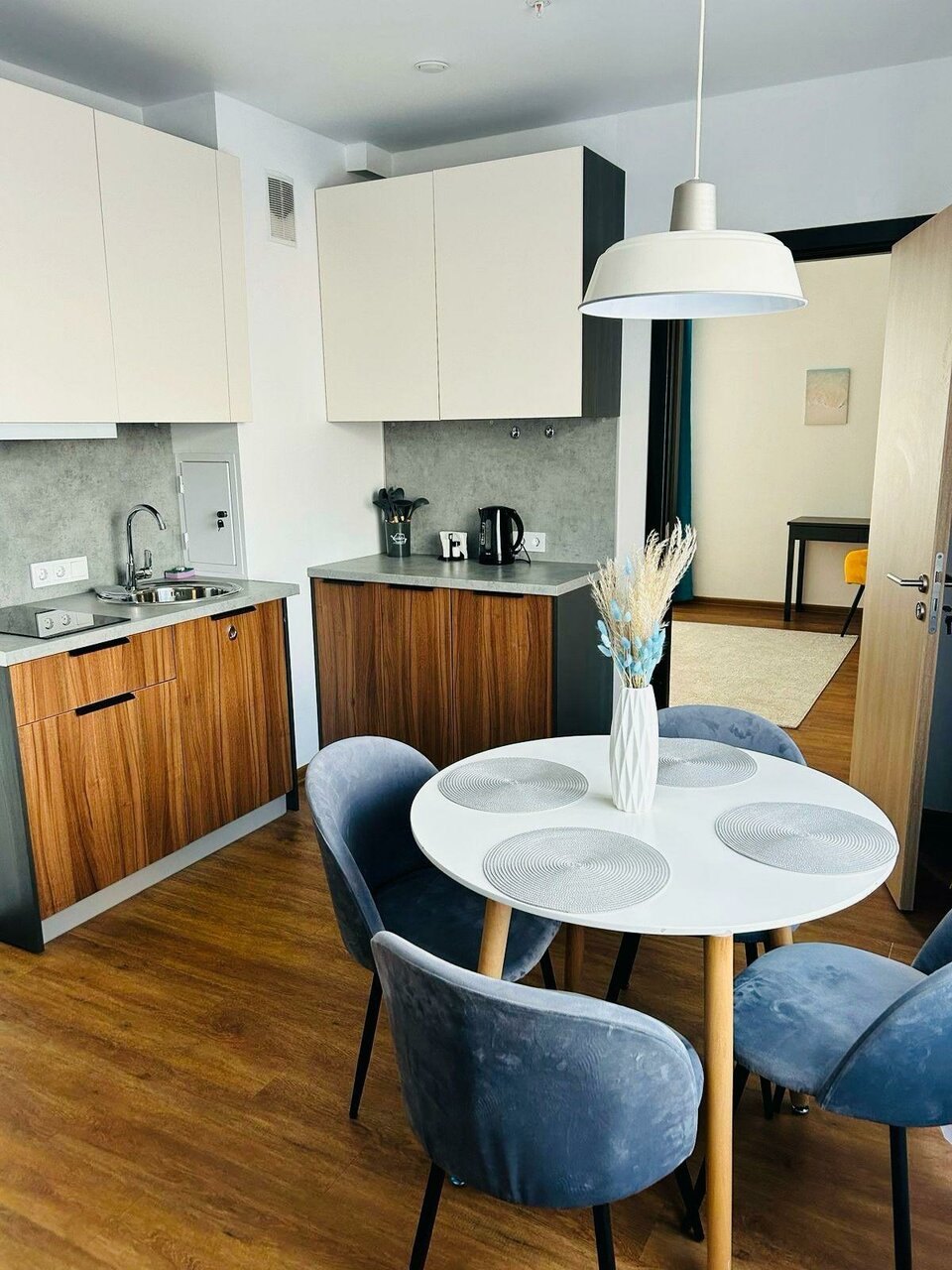 - Отдельная кухонная зона.