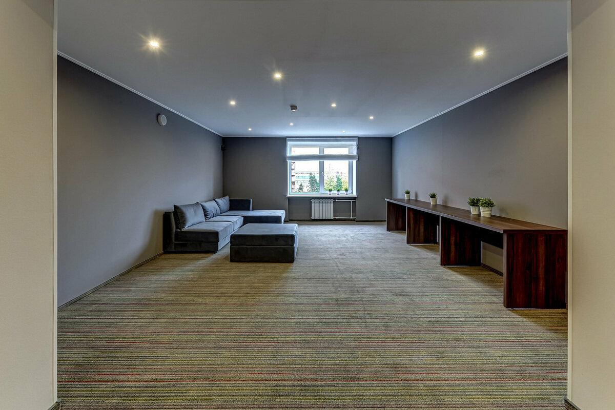 Большой зал площадью 86 кв. м — изолированное от номеров помещение на втором этаже — комфортно разместит до 60 человек. От 2 часов.
