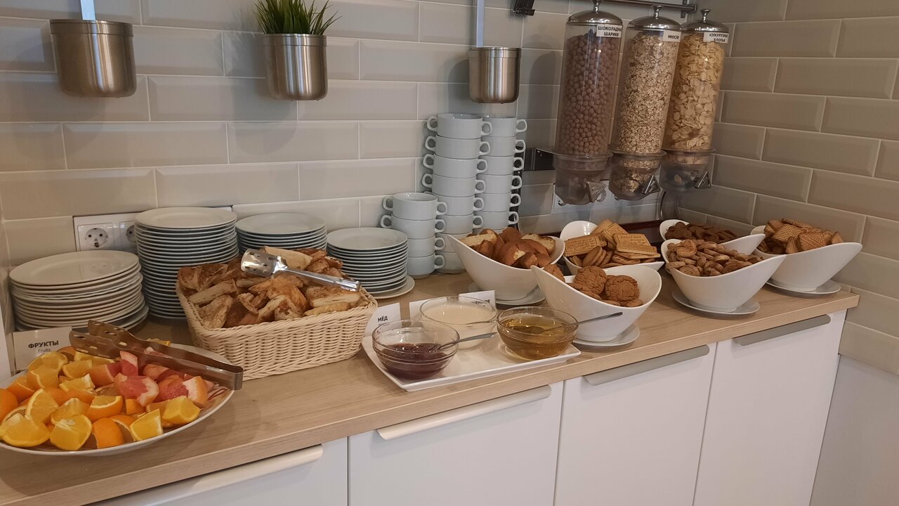 Номера — чистые, свежий ремонт, еда завтрак шведский стол, довольно разнообразно, напитки, фрукты, курица, творожные изделия, каждый может выбрать на свой вкус. Обслуживание хорошее. Не смогли открыть дверь в ванную, тут же пришёл служащий в унифоме, помог. Расположение удобное, не центр, но рядом метро, быстро можно добраться до центра. Рядом есть магазин пятёрочка, пекарня. В целом впечатление осталось очень благоприятное, спасибо.